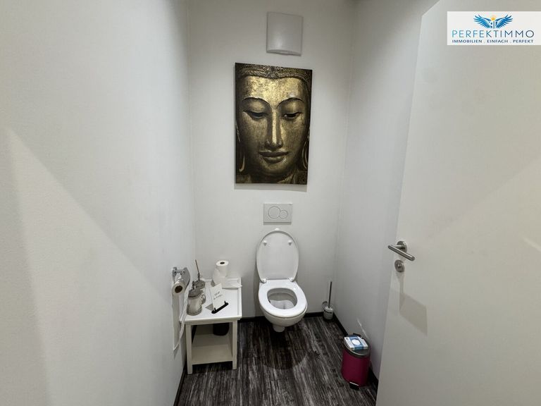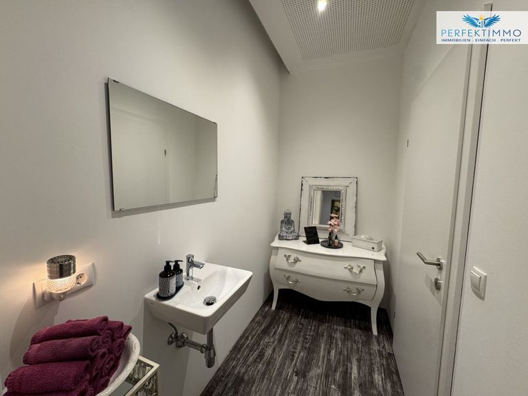 Derzeit wird die Fläche als Friseursalon genutzt, bietet jedoch zahlreiche Nutzungsmöglichkeiten – von Praxis- oder Atelierbetrieb bis hin zur Umnutzung als Wohnung. Die Zustimmung der Miteigentümer zur Wohnnutzung liegt bereits vor, die finale Abstimmung mit der Gemeinde ist einzuholen – ein Antrag auf Umwidmung wäre dann möglich.