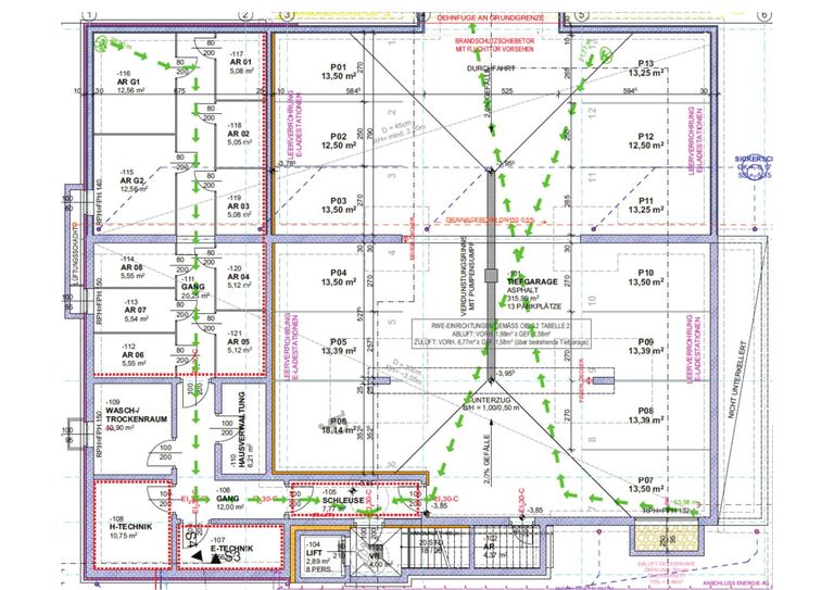 - Eine Leerverrohrung im Sanitärbereich für eine spätere Installation einer Klimaanlage am Dach ist bereits vorgesehen