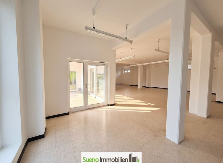 Die Immobilie überzeugt durch einen weitläufigen Hauptraum, der sich flexibel gestalten lässt, sowie ein separates Büro/Lager für eine effiziente Nutzung. Selbstverständlich sind Sanitäranlagen vorhanden. Ergänzt wird das Angebot durch eine eigene Garage und zusätzliche Stellplätze – ein praktisches Plus für Sie, Ihre Mitarbeiter und Kunden.