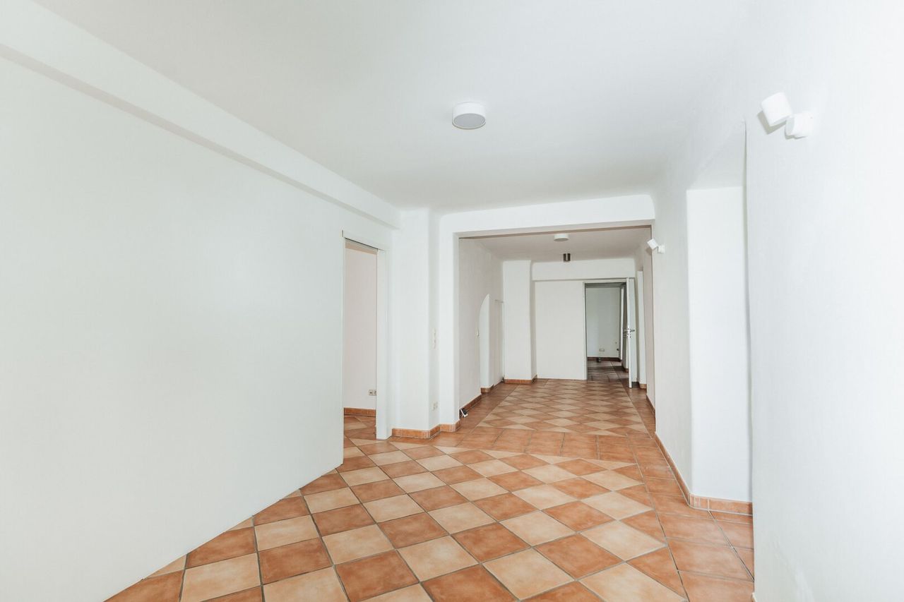 Das helle und freundliche Ambiente wird durch die großen, öffenbaren Fenster unterstützt, die nicht nur für angenehme Lichtverhältnisse sorgen, sondern auch einen herrlichen Stadtblick bieten. Die moderne Ausstattung mit Fliesenböden, Deckenleuchten und einer praktischen Zentralheizung garantiert ein angenehmes Arbeitsklima zu jeder Jahreszeit. Eine integrierte Teeküche sorgt für zusätzliche Bequemlichkeit und rundet das Raumangebot perfekt ab.