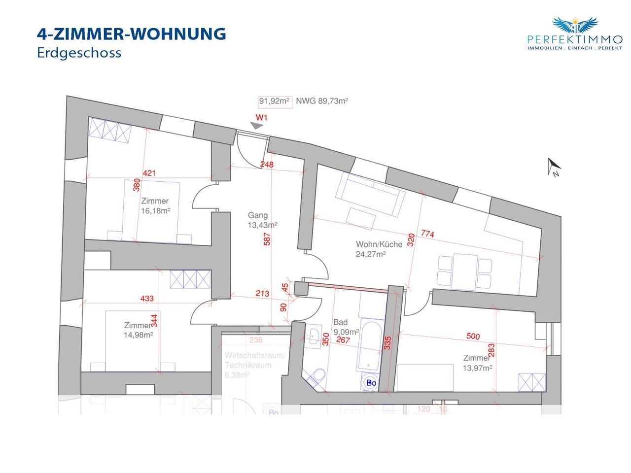 Wohnnutzfläche ca. 91,92 m²