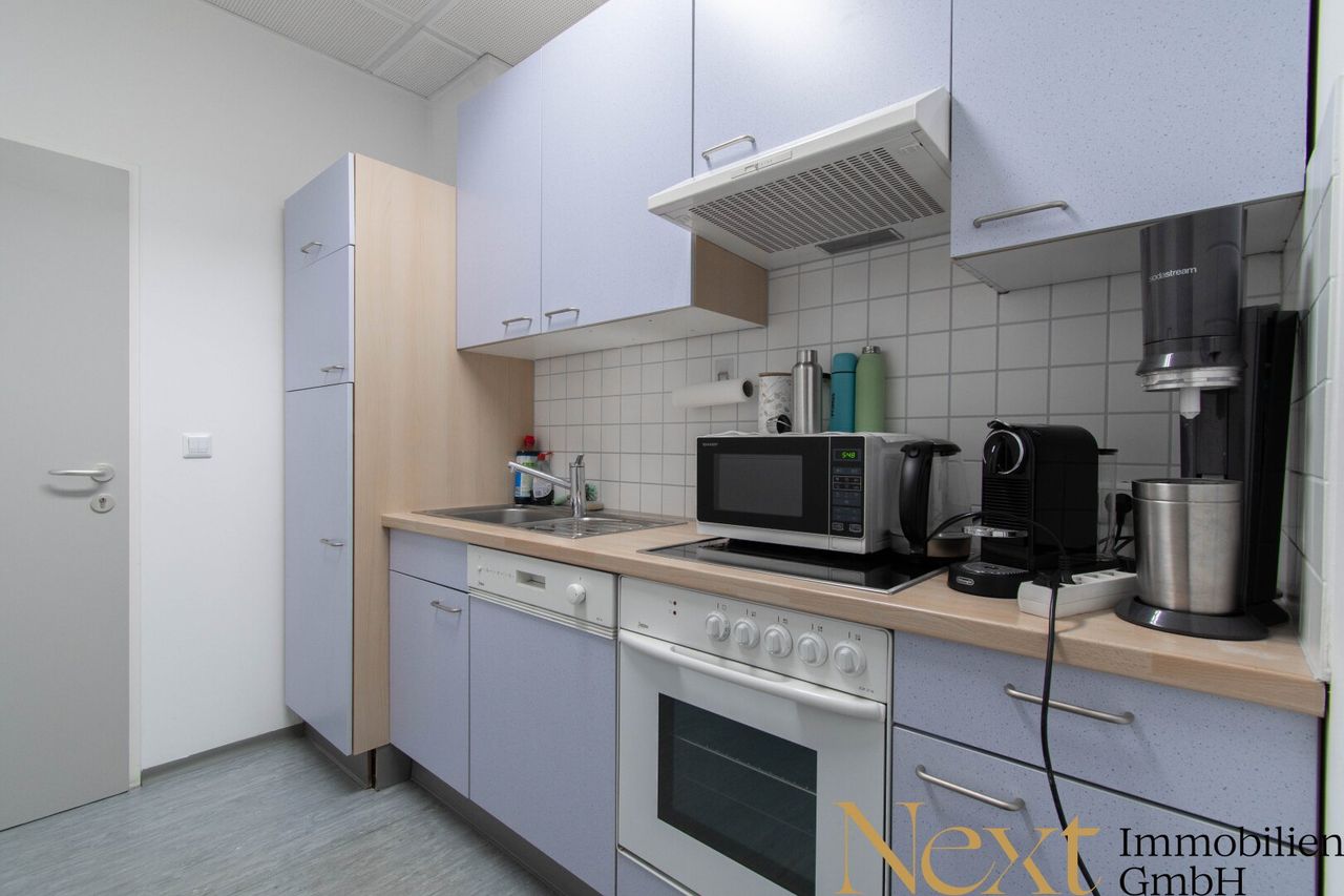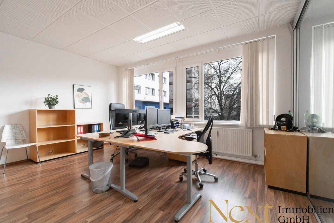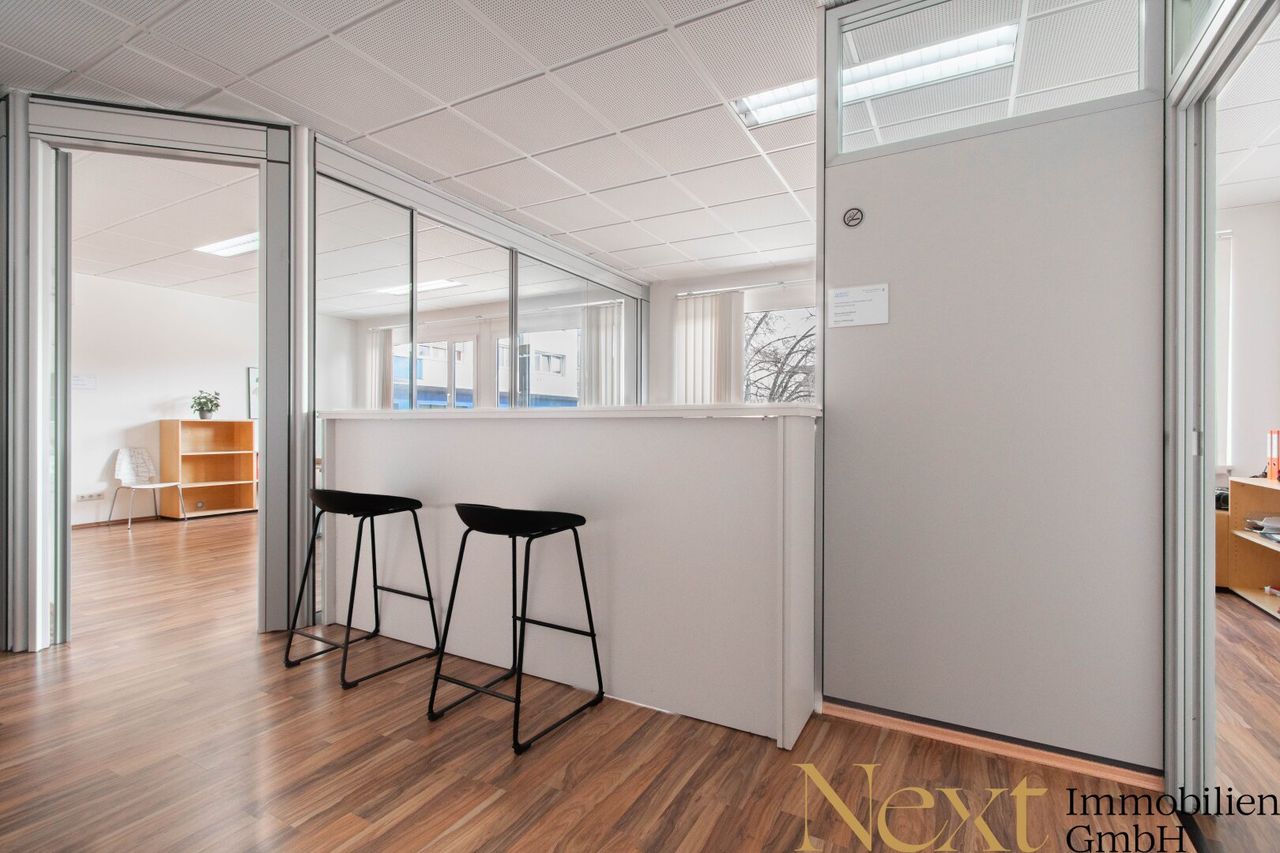 Für zusätzlichen Komfort sorgt die vorhandene Klimaanlage, die auch an warmen Tagen ein angenehmes Arbeitsumfeld gewährleistet. Der einladende Empfangsbereich rundet den professionellen Gesamtauftritt perfekt ab und hinterlässt bei Kunden und Geschäftspartnern einen überzeugenden ersten Eindruck.