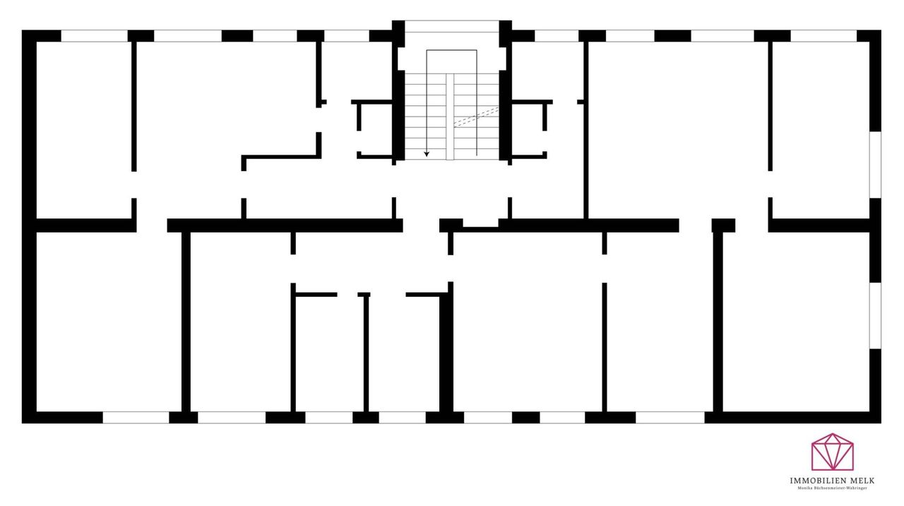 Wohnen und/oder arbeiten und/oder investieren Sie in Melk! 9 Zimmer-Eigentumswohnung in kleinem Wohnhaus im 2. Stock ohne Lift! Das Haus liegt gegenüber des Einkaufszentrums Löwenpark, Sie kaufen die gesamte 2. Etage! Sie wurde als Büro genützt, nun aber frisch saniert und wartet auf neue Benützer: Es gibt derzeit 3 Eingänge, weil es sich um 3 zusammengelegte Wohnungen handelt, die als Büro genutzt wurden. Es gibt 2 ehem. Badezimmer, die als Teeküche umgebaut sind, im 3. Badezimmer befindet sich die Gastherme, hier wurde das WC abgebaut. Überall sind die Anschlüsse noch vorhanden und können jederzeit angeschlossen werden, ebenso die 3 Küchen....