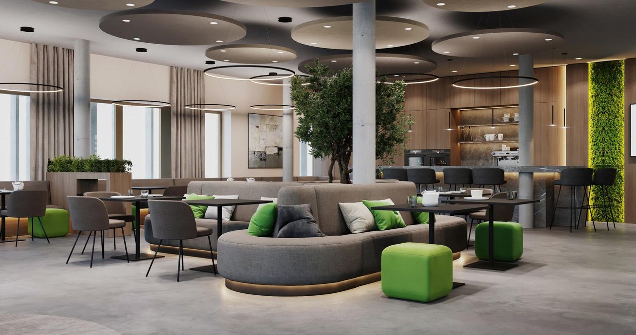 Die moderne Büroeinheit überzeugt durch große Fensterflächen mit automatisch gesteuertem Sonnenschutz sowie hochwertige technische Ausstattungen. Eine lichtdurchflutete Architektur und die begrünten Dachterrassen schaffen ein Arbeitsambiente, das Kreativität, Produktivität und Wohlbefinden fördert. Die gemeinschaftlich nutzbaren Dachgärten mit Sitzlandschaften, Baumbepflanzung und ruhigen Rückzugsorten laden zu Pausen und Austausch im Grünen ein.