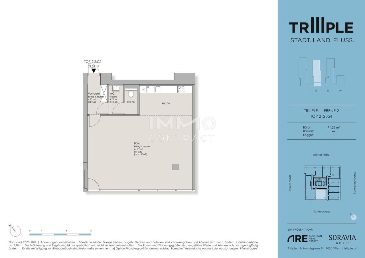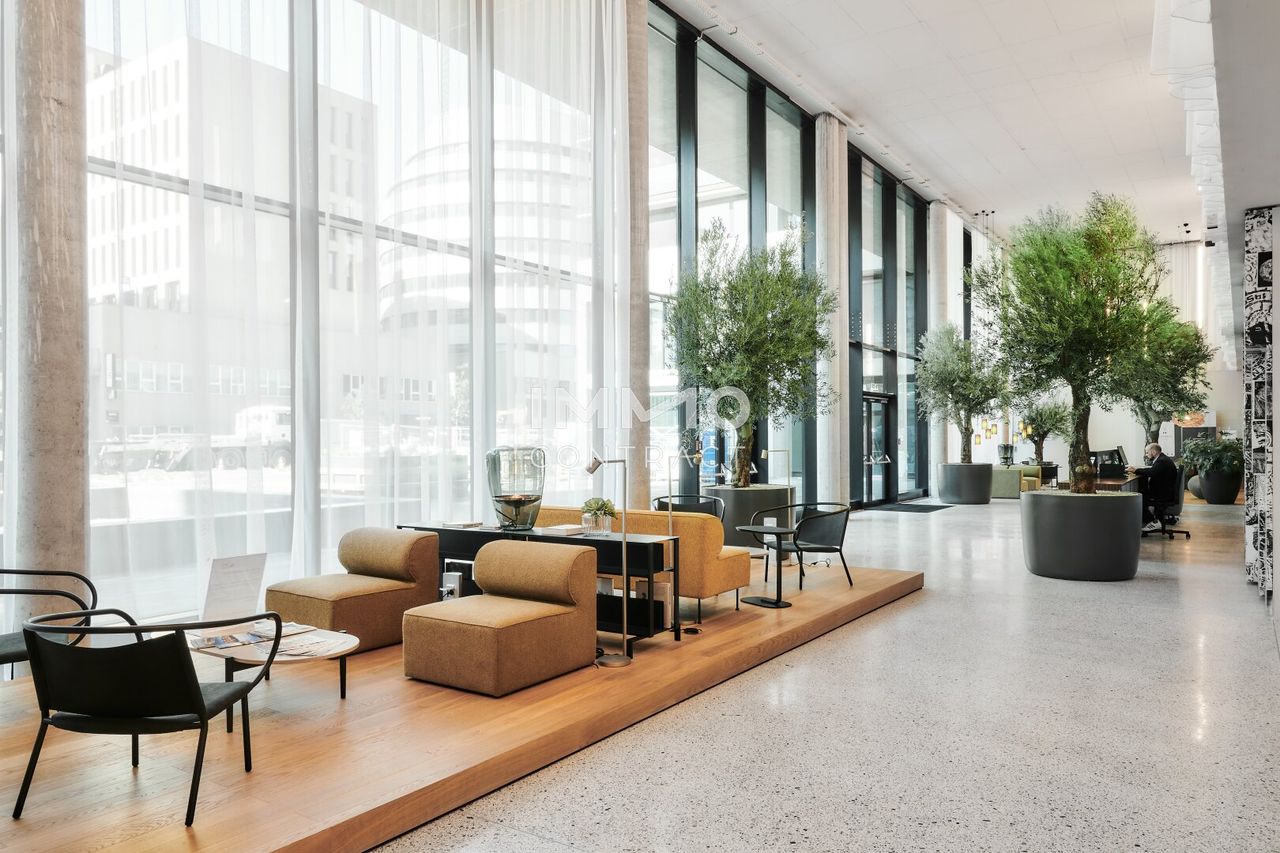 Zum Verkauf steht eine helle Bürofläche im TrIIIple Plaza. Das Büro verfügt über eine Nutzfläche von ca. 71,28 m², aufgeteilt auf einen großem Raum sowie Sanitärräumlichkeiten. Der Boden ist mit Fliesen und Parkett ausgelegt. Zwei Tiefgaragenstellplätze in der hauseigenen Tiefgarage kann zusätzlich erworben werden. In der aufwendig gestalteten Lobby empfängt der Concierge Bewohner*innen und Besucher*innen in eleganter Atmosphäre, sorgt für Sicherheit und steht für diverse Haus-Services zur Verfügung. Zusätzlich bietet die exklusive Smart House-App ALFRED weitere Annehmlichkeiten: ob Zugriff auf Raumbuchungen, Öffnen von Paketboxen, Buchungen von diversen Dienstleistungen, Abrufen von Öffi-Abfahrtszeiten oder die Pooltemperatur – ALFRED macht das Leben und...