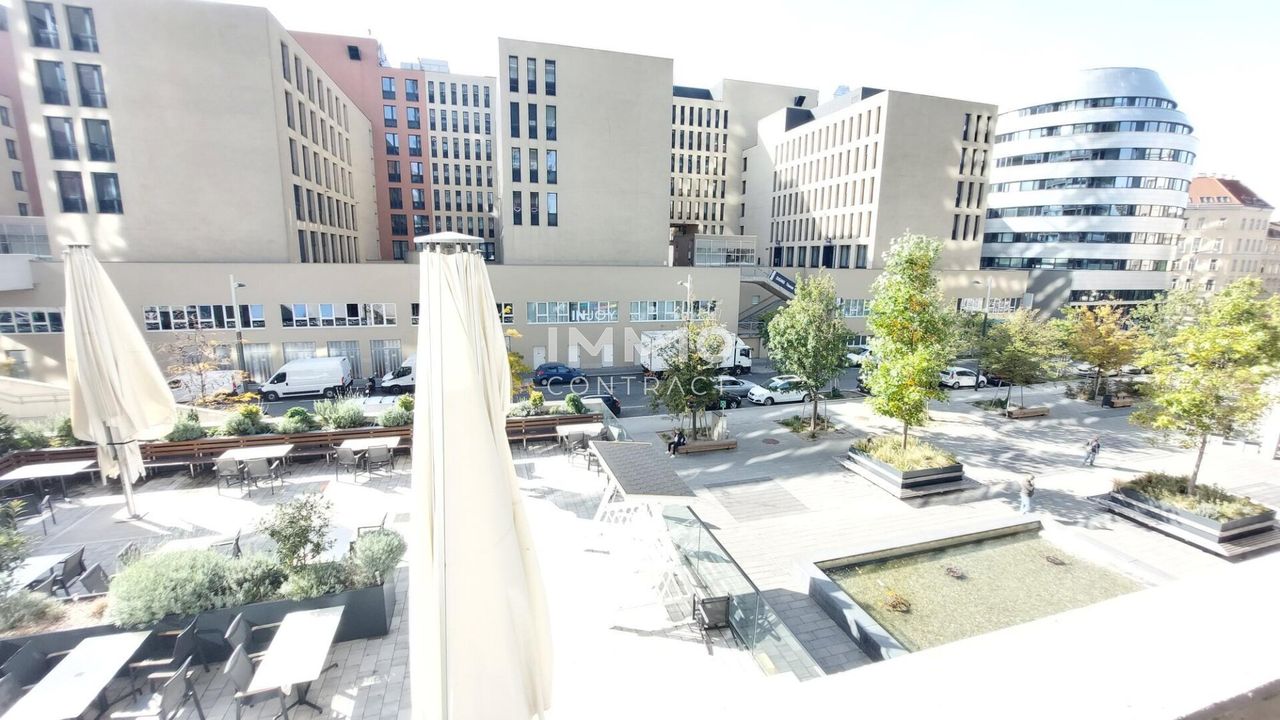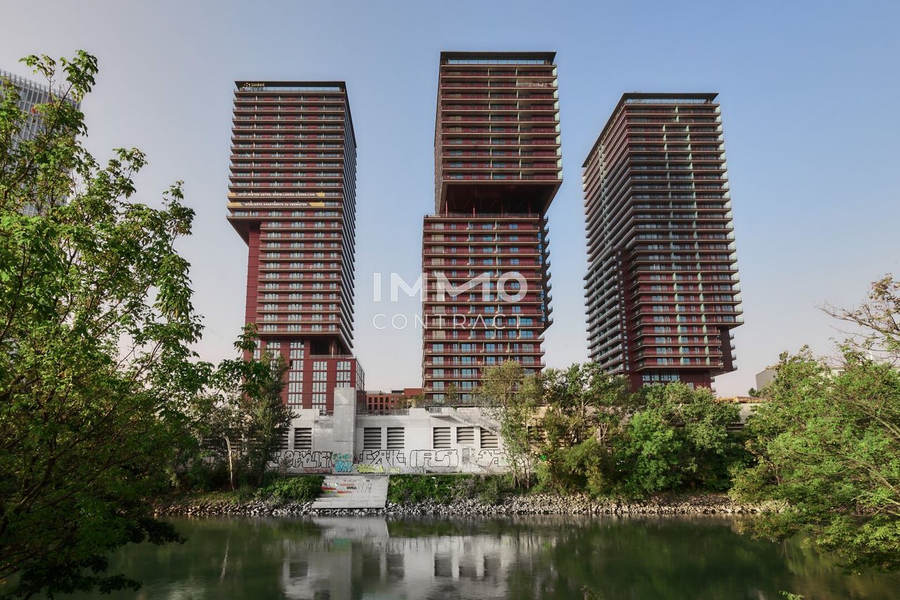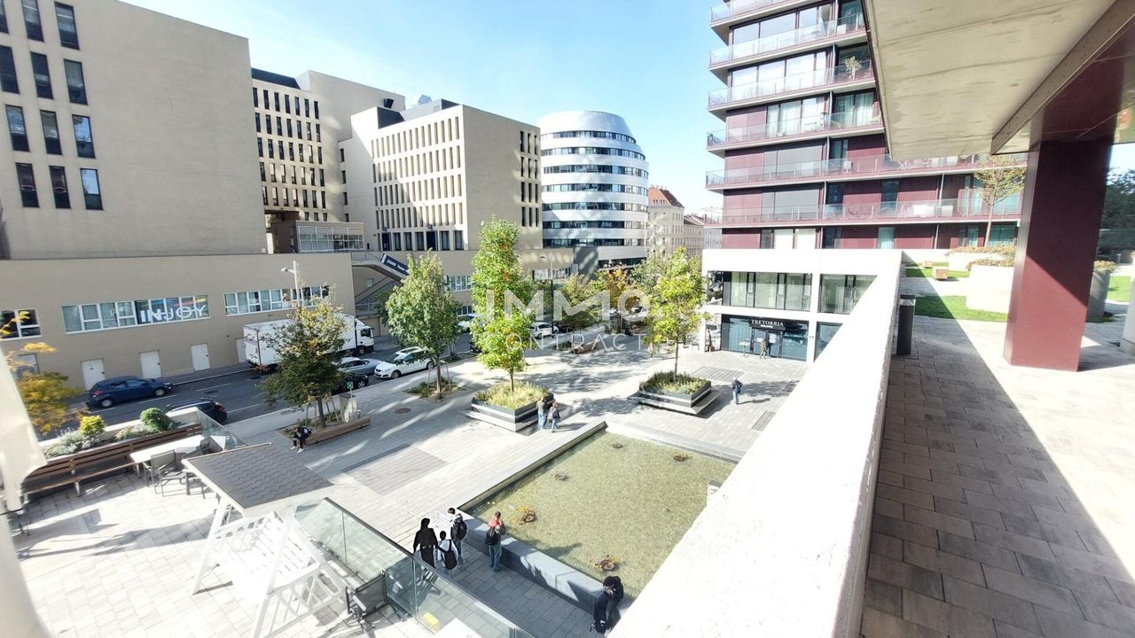 Ein umfangreiches Freizeitangebot schafft mit Bocciabahn, Spiel-, Sport- oder Basketballplatz der 4.000 m² große begrünte Park, der eine perfekte Verbindung der drei Gebäudeteile schafft. Am großzügigen Rooftop-Pool genießt man einen atemberaubenden Blick über die ganz Wien. In der Party- und Barbecue-Lounge verbringt man ungestörte Stunden im Kreise der Kollegen oder Geschäftspartnern.