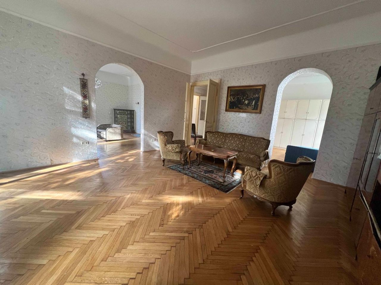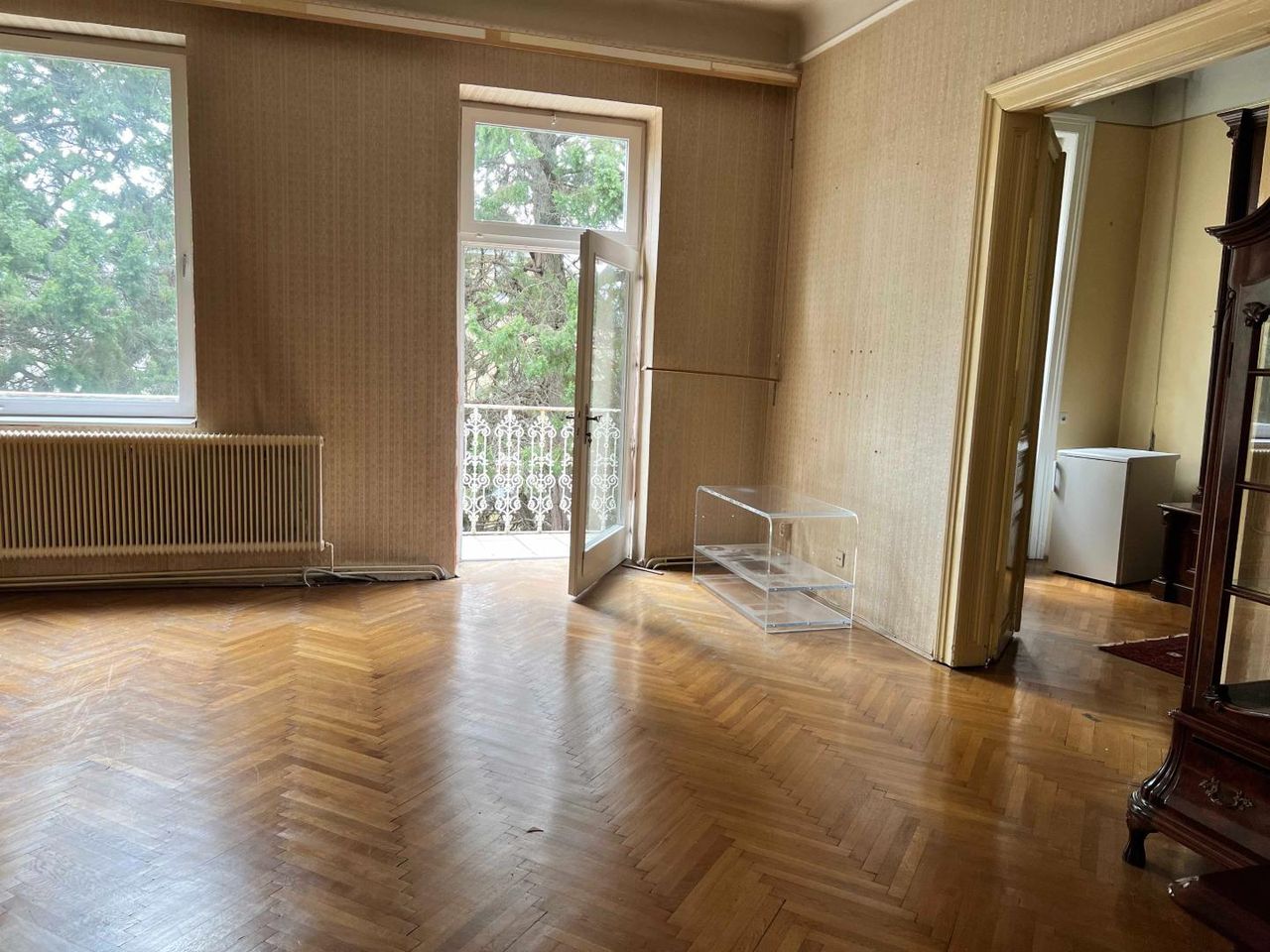 -Repräsentative Raumaufteilung mit original erhaltenen Details wie Parkettböden, Flügeltüren und Holzkastenfenstern