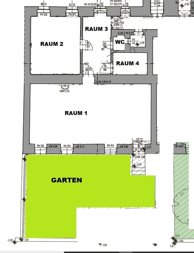 Umwidmungspotenzial vorhanden, zum Sanieren mit viel Potenzial, Eigengarten (zeigt auf den Hietzinger Kai), Wasseranschluss vorhanden, natürliche Belichtung vorhanden, Toilette