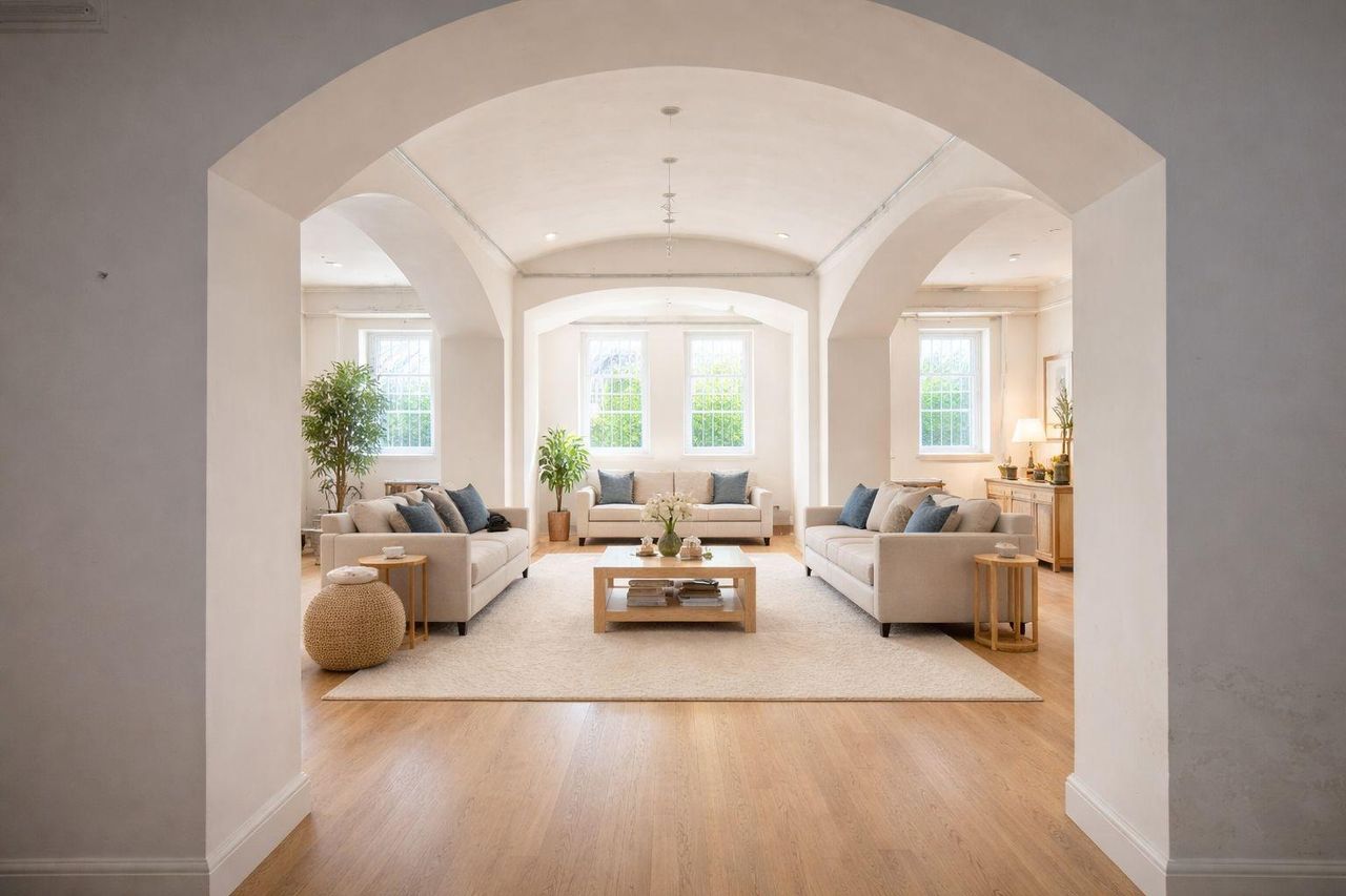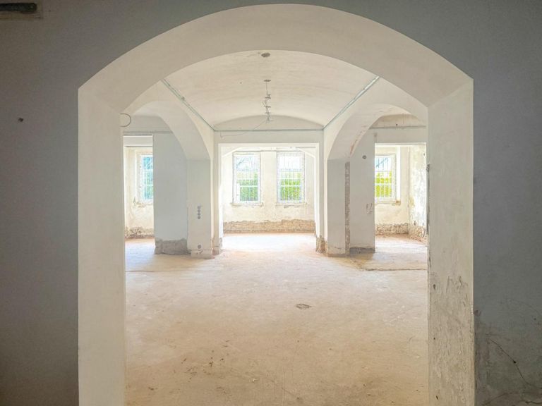 Die architektonischen Elemente des Altbaus – insbesondere die Gewölbestruktur – verleihen der Fläche einen besonderen, charaktervollen Charme. Optional bestünde die Möglichkeit, einen Teil des Gartens entweder zu mieten oder zu pachten.