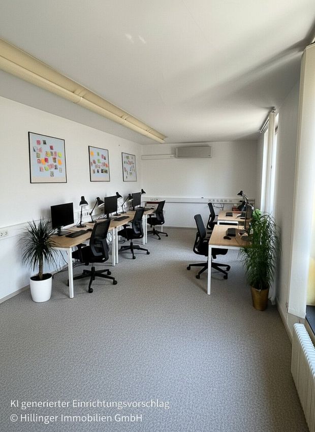 Derzeit wurde die Fläche als Büro genutzt und präsentiert sich in einer klaren, funktionalen Struktur.
