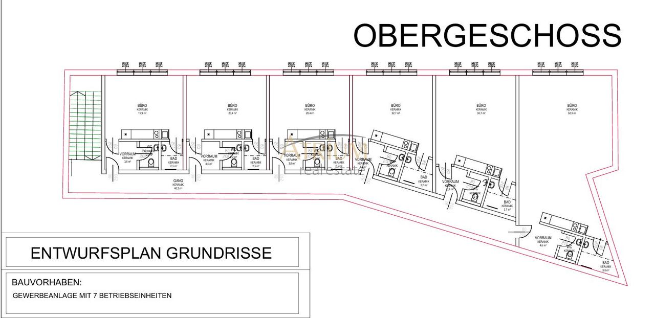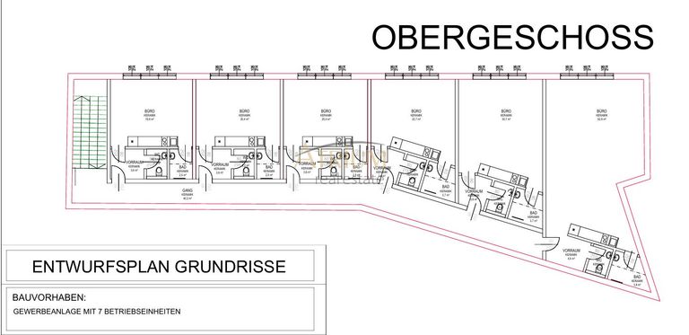 Angeboten wird ein top modernes Büro im 1. OG mit 32,20m² Nutzfläche inklusive Teeküche, Badezimmer und getrennter Toilette. Das Projekt verfügt über je sechs Einheiten mit gesamt ca. 206m² im Erdgeschoss, ca. 221m² im 1. Obergeschoss und ca. 222m² im 2. Obergeschoss, dies ermöglicht eine erzielbare Nutzfläche von ca. 649m². Ihr neuer Firmenstandort wartet auf Sie - Seien Sie noch vor Baubeginn mit an Board und nehmen bei der finalen Gestaltung teil.