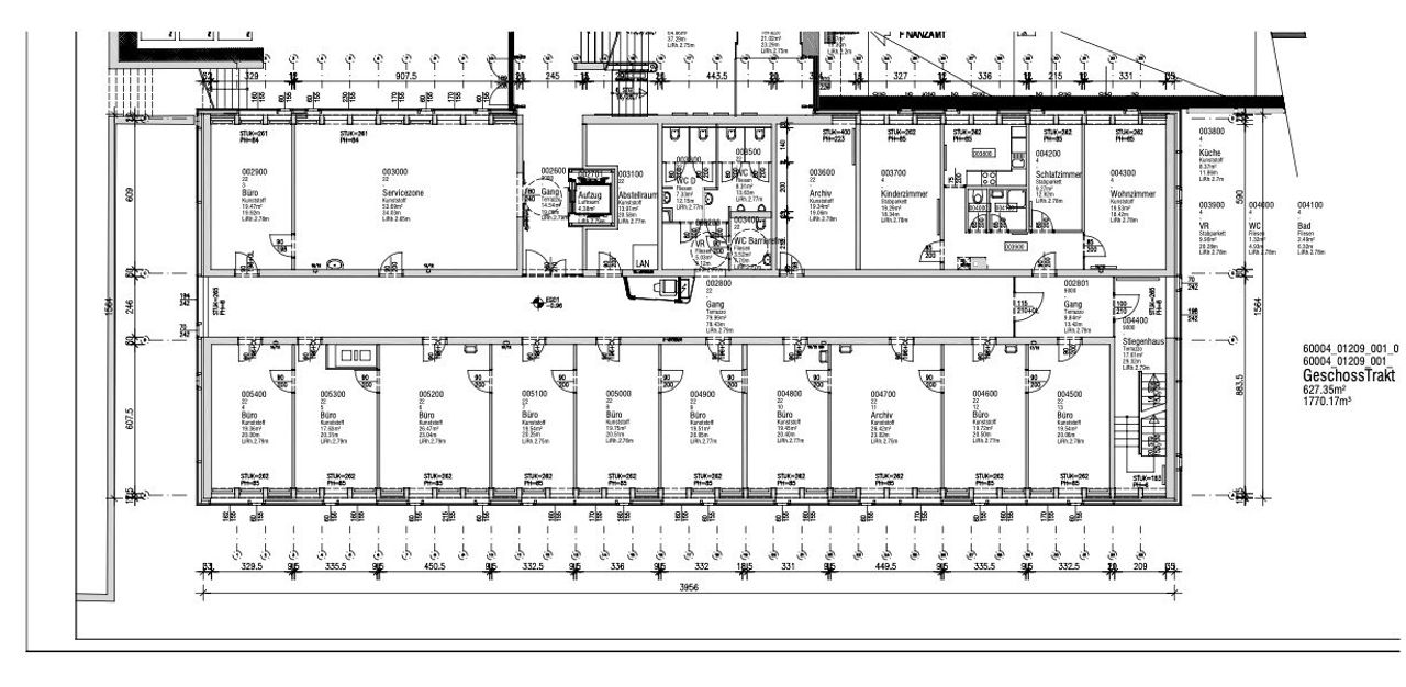 Die Einheit verfügt über 11 separat begehbare Büroräume, die sich optimal für Einzelbüros, Abteilungen, Projektteams oder vermietbare Office-Einheiten eignen. Ergänzt wird das Raumangebot durch einen Lager- bzw. Druckerraum, der eine effiziente Organisation des Arbeitsalltags unterstützt.