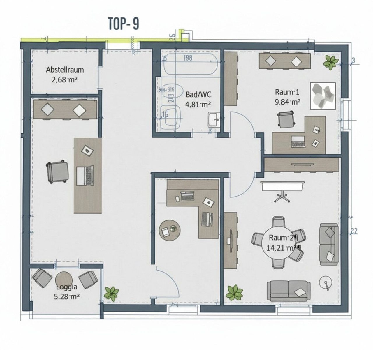 - Büroräumlichkeit mit Loggia – ideal für kurze Pausen an der frischen Luft