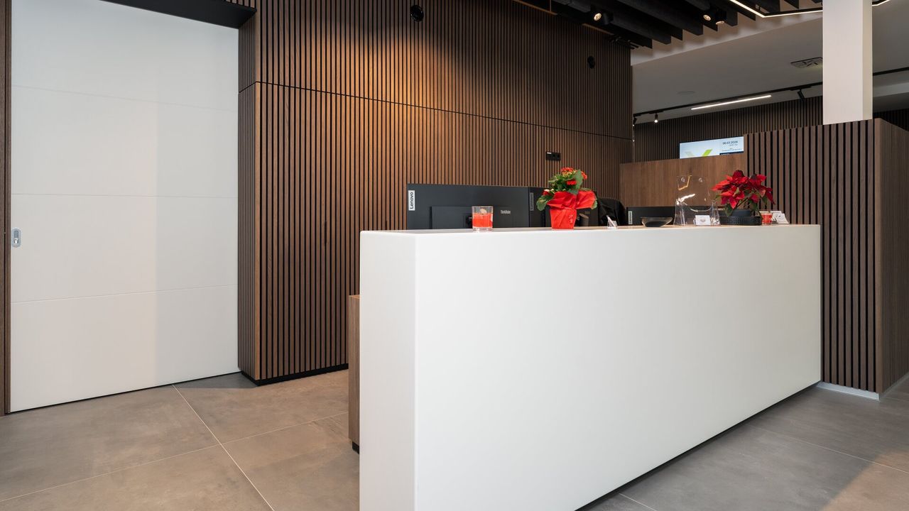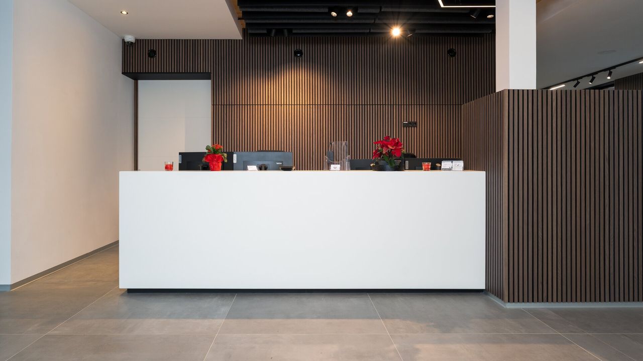 Bereits beim Betreten des Gebäudes spüren Sie den durchdachten Komfort: Die Lobby mit einem professionellen Empfangsbereich ist während der Geschäftszeiten stets besetzt. Ihre Gäste werden hier freundlich empfangen und zu Ihrem Büro begleitet.
