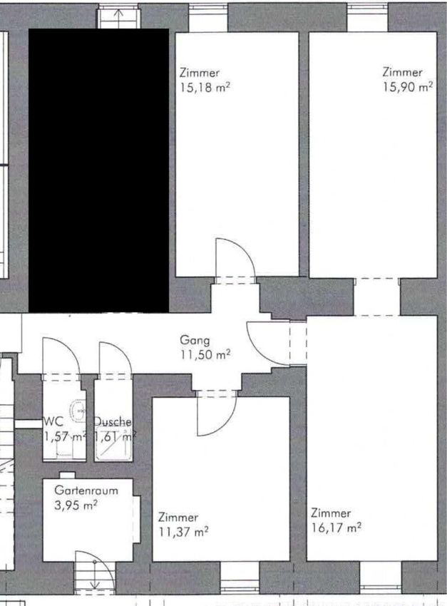 Raumaufteilung: + 4 Räume, davon 3 getrennt begehbar + 1 Raum, nutzbar z.B. als Kaffeeküche + Toilette