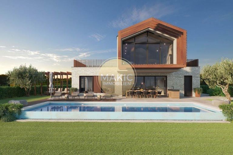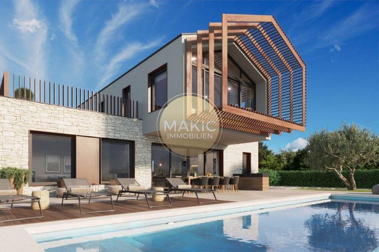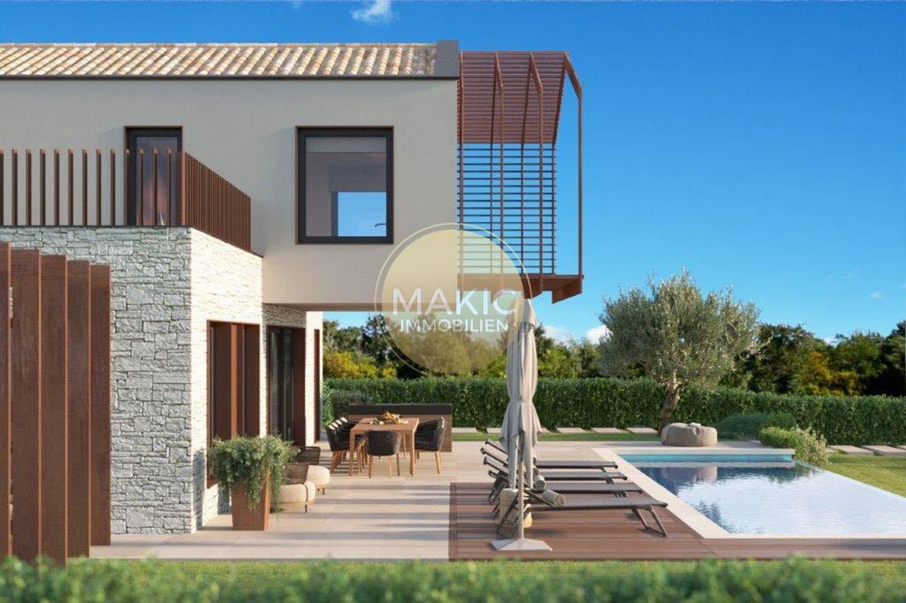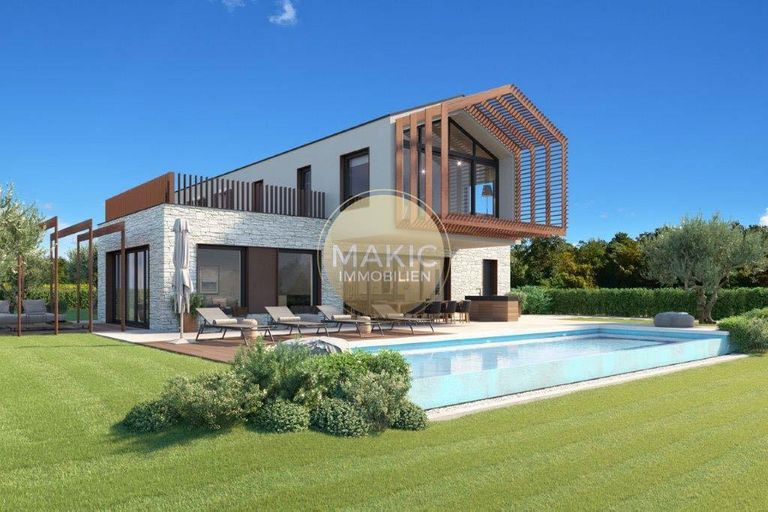 Nur wenige Autominuten vom Zentrum von Vižinada und 15 Minuten von Poreč und dem Meer entfernt, steht diese schöne im Bau befindliche Villa mit Swimmingpool und großem Garten zum Verkauf. Die Villa befindet sich auf einem Grundstück von ca. 1.100 m2 und hat eine Bruttofläche von ca. 260 m2.