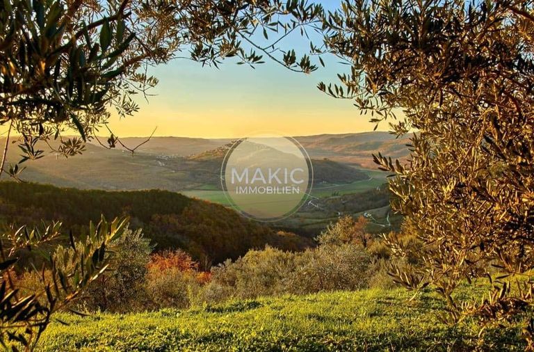Unweit von Motovun, auf einem ruhigen und schönen Hügel, befindet sich ein Grundstück mit einer Fläche von ca. 30.000 m2 davon ca. 3.800 m2 ist ein Baugrundstück, ca. 1.100 m2 touristische Nutzung, der Rest ca. 25.000 m2 sind landwirtschaftliche Flächen. Auf dem Grundstück befindet sich eine Ruine mit einer Grundrissfläche von ca. 95m2. Das Anwesen bietet einen schönen Blick auf Motovun und die umliegenden Hügel.