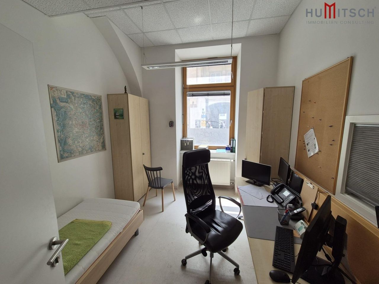 Die Ordinationsfläche befindet sich im EG eines Altstadthauses im Zentrum von Graz. Die Einheit liegt ca. 3 Gehminuten vom Jakominiplatz entfernt, bietet eine optimale Verkehrsanbindung und nahe Parkmöglichkeiten in den umliegenden Tiefgaragen. Die Fläche ist ausschließlich für Ordinationszwecke vorgesehen.
