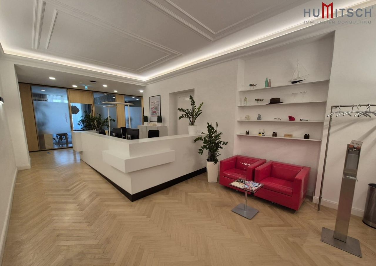 Beschreibung: Die moderne Bürofläche im Ausmaß von 516 m² befindet sich in bester Grazer Innenstadtlage, direkt in der Einkaufsstraße Herrengasse, zwischen Hauptplatz und Jakominiplatz gelegen. Die Immobilie ist klimatisiert und untergliedert in 15 Büroeinheiten, zwei Teeküchen, 5 WC-Einheiten, Vorraum/Empfang, Terrasse und div. Nebenräume. Die öffentliche Anbindung für Straßenbahn und Bus ist jeweils ca. 200 m entfernt (Haltestelle Jakominiplatz und Hauptplatz). Kostenpflichtige Parkplätze finden sich ebenfalls ca. 200 m entfernt in der Opern-Parkgarage und Kastner-Garage. Es kann sowohl die gesamte Bürofläche angemietet werden als auch Teilflächen/Büroeinheiten. Folgende Bürofläche steht zur Verfügung: 1.OG/ Top 1066 und 1066a: ca. 516 m² - teilbar...