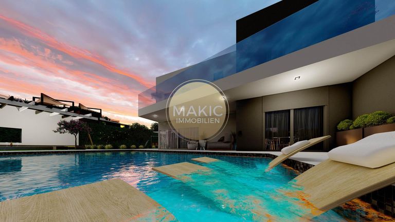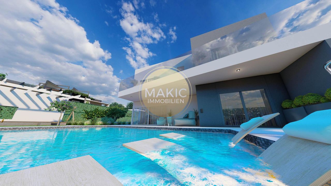 Ein neues Projekt mit 5 modernen Villen, Pool und Meerblick, erwartet Sie in einer neuangelegten Siedlungsstraße.
