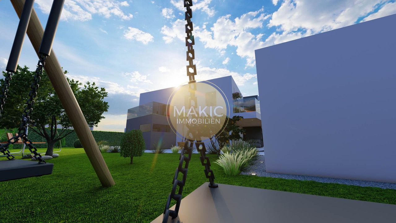 Im begrünten Garten, der mit einem Bewässerungssystem ausgestattet ist, befindet sich ein großzügiger Swimmingpool der Sie den Sommer herrlich genießen lässt! Ein Autoabstellplatz bietet Platz für zwei PKWs und eine Ladestation für ein Elektroauto.