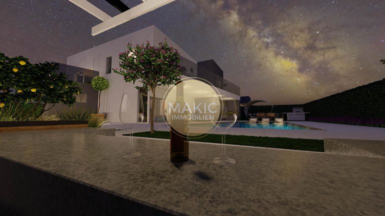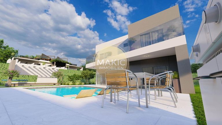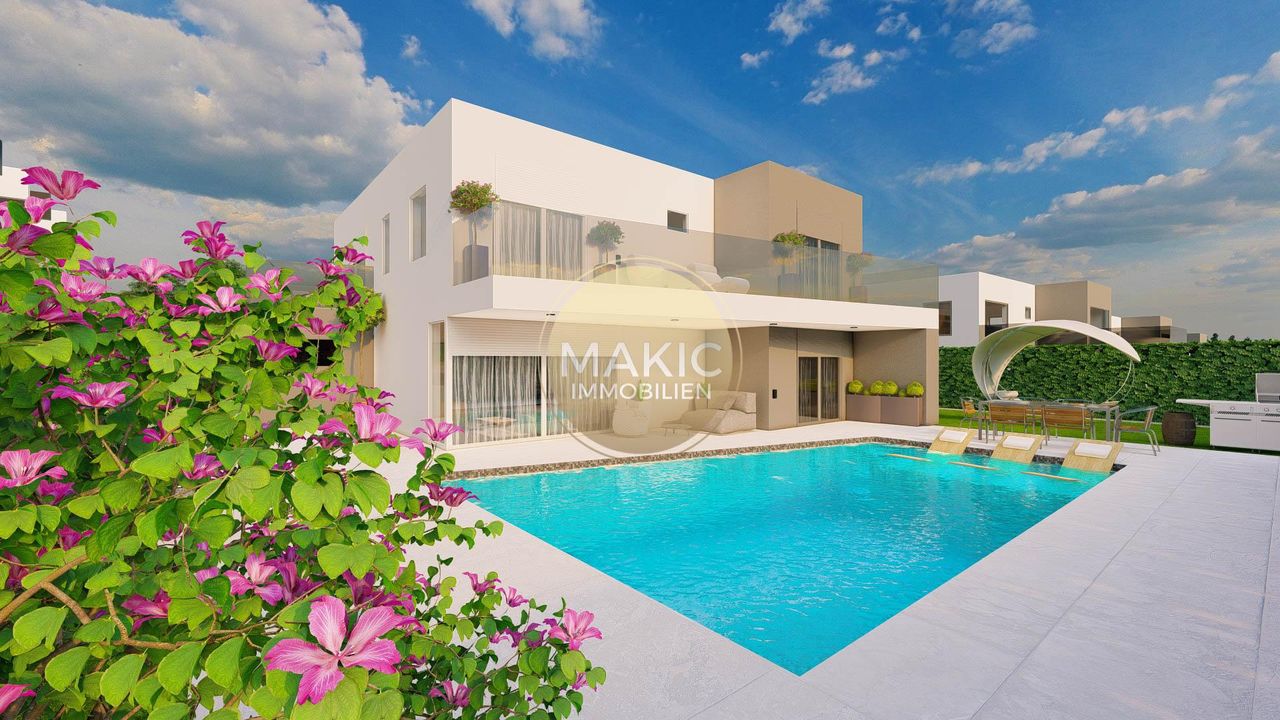 Kaštelir - ein Ort aus einem harmonischen Zusammenspiel aus modernem Leben und gelebter Tradition. Dieses Gebiet führt durch historische Straßen und ist heute ein sehr beliebter Ort bei Ferienhausbesitzern, da Sie in nur ca. 15 Minuten an den schönen Stränden rund um Poreč und Červar sind! Ein neues Projekt mit 5 modernen Villen, Pool und Meerblick, erwartet Sie in einer neuangelegten Siedlungsstraße. Eine ca. 235 m² große Villa auf einem ca. 860 m² großem Grundstück steht für Sie zur Verfügung. Die erste Etage der Villa besteht aus einem großen offenen Küchen- Ess- Wohnzimmer, 1 Schlafzimmer mit eigenem Bad und Nebenräumen....