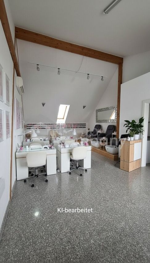 Zur Vermietung steht ein gepflegter Geschäftsraum im 1. Obergeschoss mit einer Gesamtfläche von 39,8 m². Der Raum ist klimatisiert und bietet durch normale Fenster sowie Dachfenster eine angenehme, helle Atmosphäre.