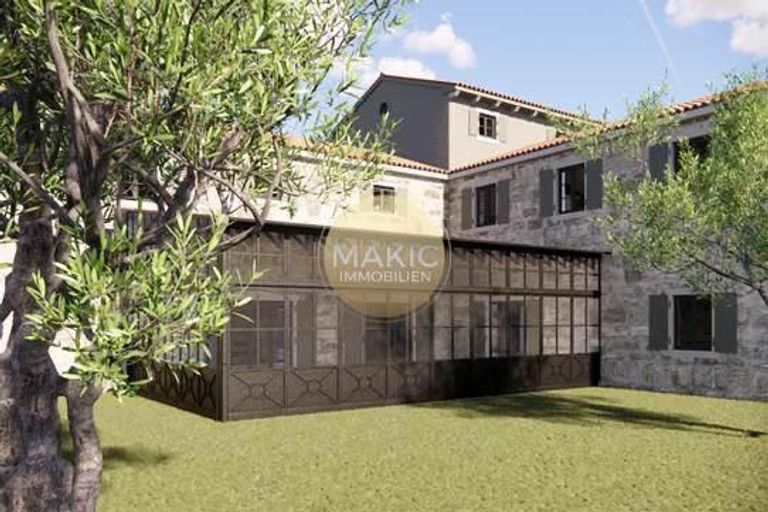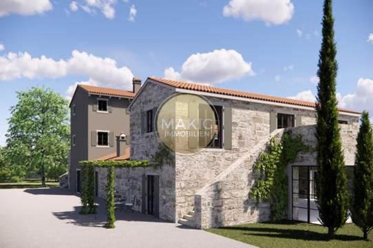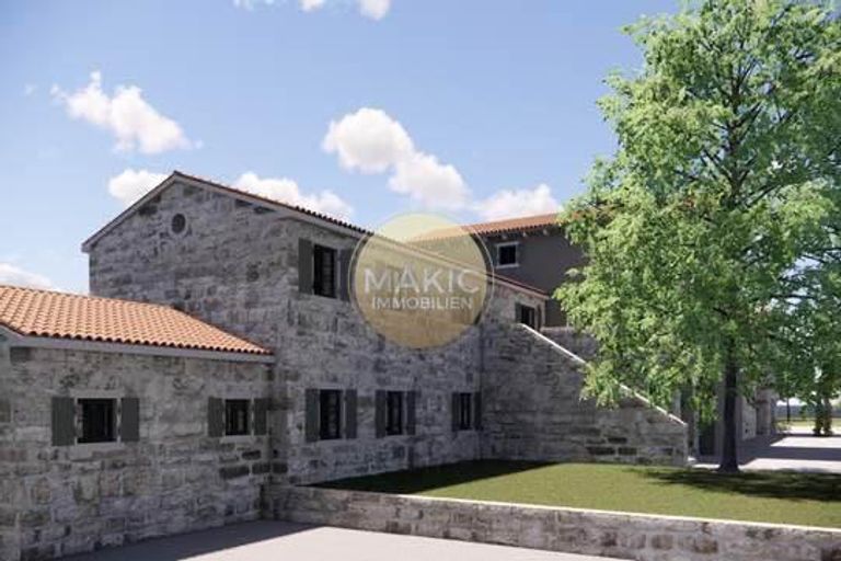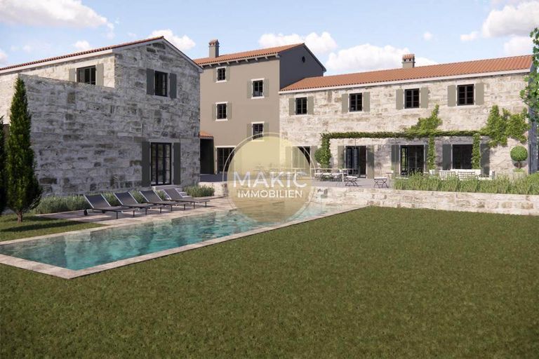 Mitten in diesem Gebiet, in einem kleinen Dorf in der Nähe von Sveti Lovreč, steht diese gut erhaltene Steinruine zum Verkauf, die vollständig von einer steinernen Trockenmauer umgeben ist. Das Anwesen gliedert sich in ein Haupthaus mit einer Grundrissbereiche von ca. 200 m2 und ein Nebengebäude von ca. 60 m2. Das sehr ruhig gelegene Grundstück ist von viel Grün begrenzt und umfasst eine Fläche von ca. 2.000 m2, alles befindet sich innerhalb der Bauzone. Für diese Immobilie hat der Eigentümer einen Vorentwurf für ein fertiges Haus von ca. 1.000 m2 entworfen.