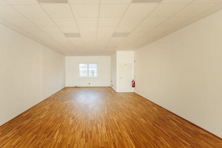 Der helle Hauptbereich mit ca. 91 m² ist mit einem edlen und zugleich robusten Eichenparkettboden ausgestattet und bietet somit ein repräsentatives Ambiente für Ihren neuen Unternehmensstandort.