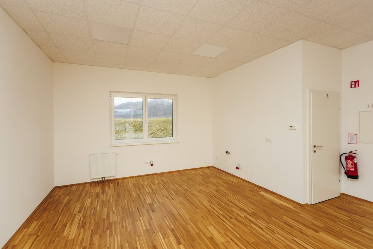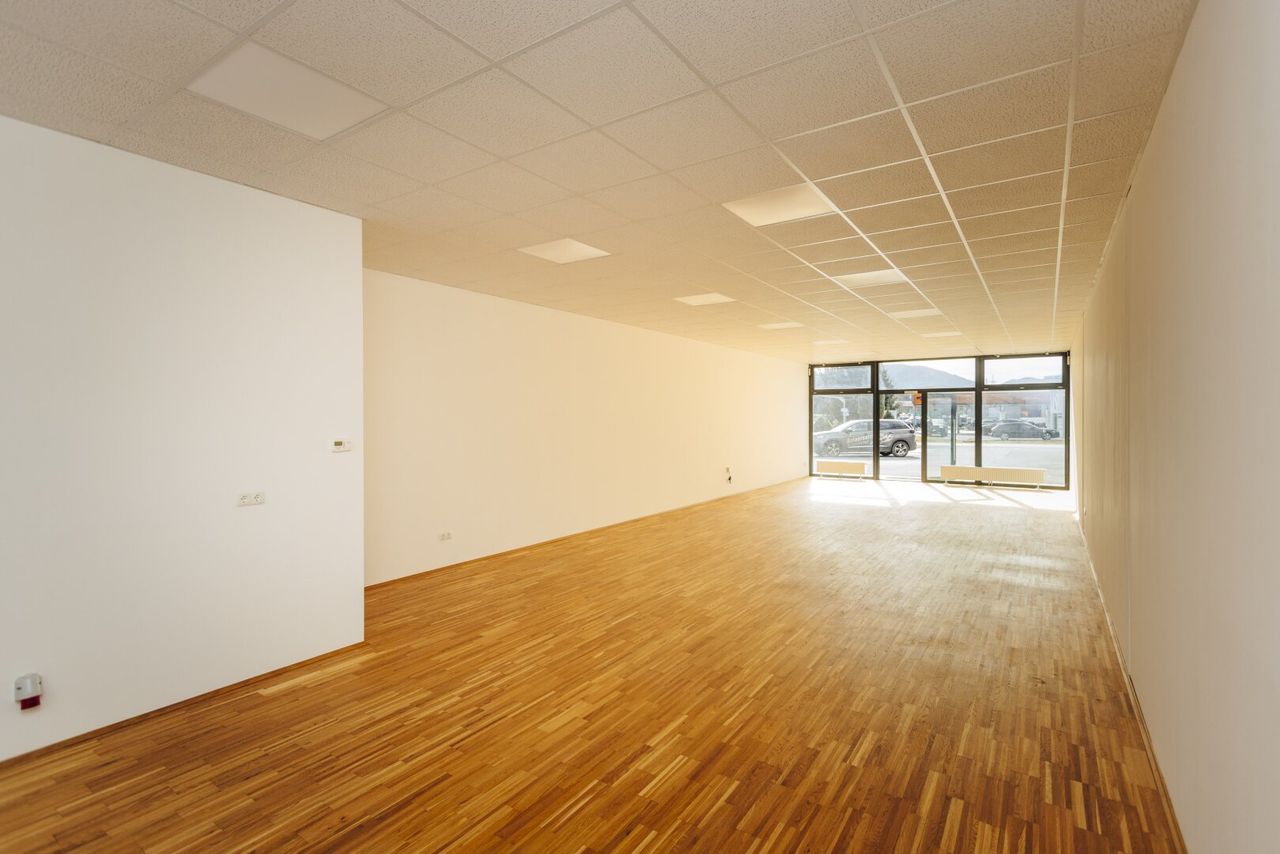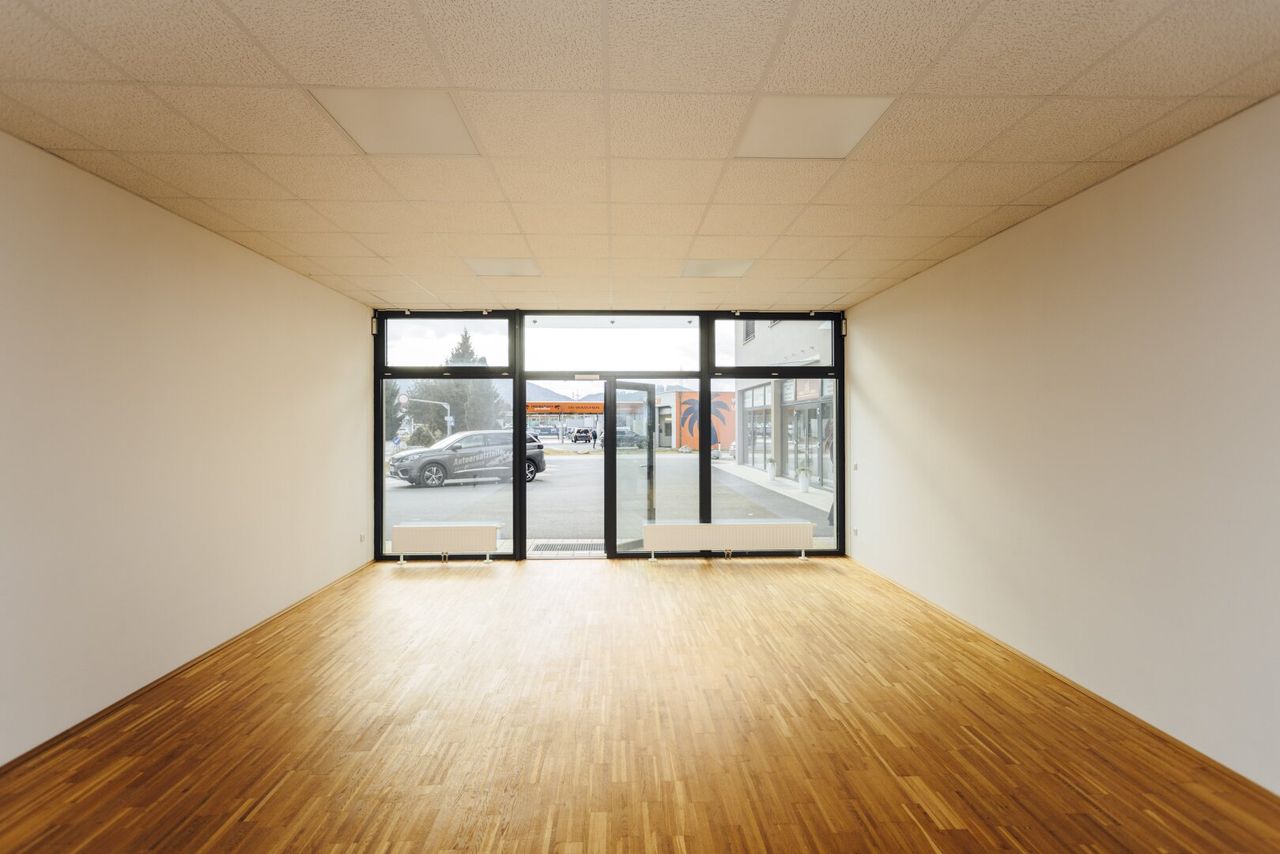 Profitieren Sie von dieser Top-Lage im Gewerbezentrum von Gratwein! Die barrierefreie und vollkommen einladende Gewerbefläche befindet sich im Erdgeschoss des Gebäudes und verfügt über eine großzügige Auslagen- bzw. Fensterfront, die sich ideal für Präsentations- oder Ausstellungszwecke eignet. Der helle Hauptbereich mit ca. 91 m² ist mit einem edlen und zugleich robusten Eichenparkettboden ausgestattet und bietet somit ein repräsentatives Ambiente für Ihren neuen Unternehmensstandort. Zahlreiche Anschlussmöglichkeiten für Glasfaser-Internet, Strom sowie Starkstrom stehen in der Geschäftsfläche ebenfalls zur Verfügung. Selbstverständlich verfügt die Einheit auch über eine Toilette inklusive Handwaschbecken – ideale Voraussetzungen für moderne Büro- oder Dienstleistungsbetriebe. Die Heizkosten sowie zwei bis...