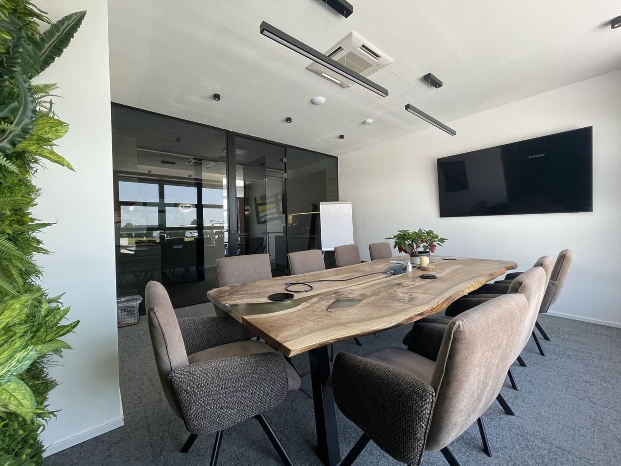 Ein großer Konferenzraum (21m²) mit einem großen Smart TV-Gerät für Präsentationen