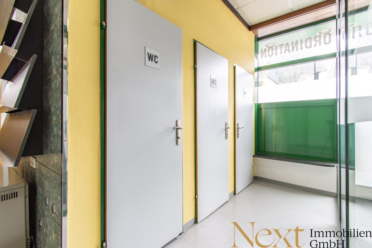 Die derzeitige Raumaufteilung umfasst mehrere Behandlungs- bzw. Büroräume, einen Wartebereich, einen Empfang sowie mehrere Sanitäranlagen und Umkleiden. Eine individuelle Anpassung oder ein Umbau nach Mieterwunsch ist möglich. Alternativ kann die Fläche auch im derzeitigen Zustand übernommen werden.