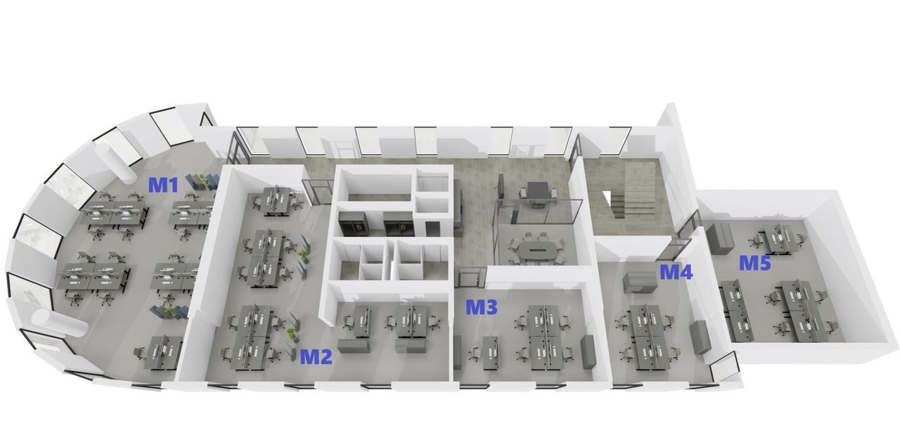 Fläche: Das Büro erstreckt sich über eine großzügige Fläche von ca. 108 m², die perfekt für bereits etablierte Unternehmen geeignet ist, die expandieren möchten. Es bietet ausreichend Platz für verschiedene Abteilungen und Teams.