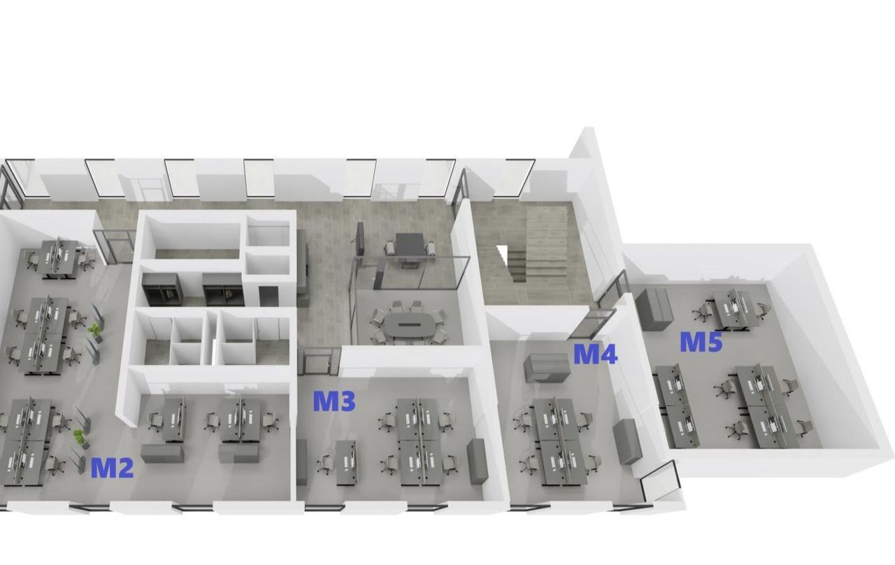 Gemeinschaftsbereiche: Der Gewerbekomplex bietet auch attraktive Gemeinschaftsbereiche, die von den Mietern genutzt werden können. Dazu gehören Lounge-Bereiche für informelle Besprechungen, eine Kantine für Pausen und Networking-Events sowie Konferenzräume für größere Meetings oder Präsentationen. Im gleichen Stockwerk befindet sich außerdem eine voll ausgestattete Teeküche.