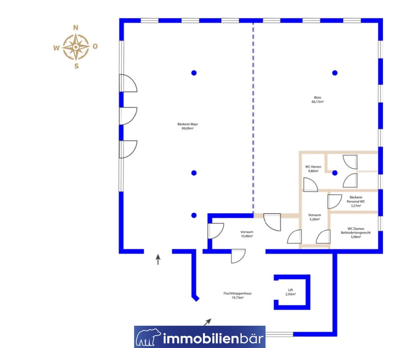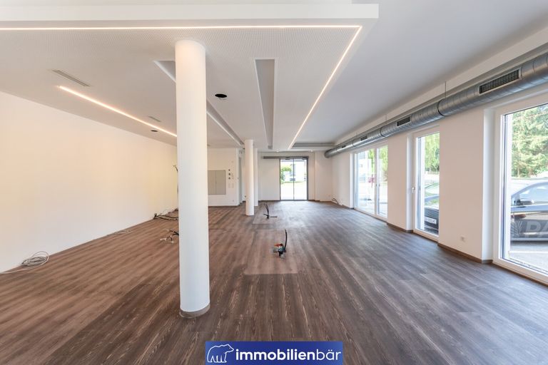 Die Möglichkeiten für die Nutzung von diesem frei stehenden Geschäftslokal sind vielseitig. Denn auf 99m² und einem zusätzlichen Lagerraum lassen sich viele Geschäftsideen in die Realität umsetzen. Direkt neben dem Haupteingang vom Gebäude oder über eine eigene elektrische Schiebetür befindet sich der Geschäftsraum mit viel Tageslichteinfall. Außerdem ist ein Lift im Gebäude, der genutzt werden kann. Die WC-Anlagen und der Vorraum zählen zudem zur Fläche. Die gesamte Fläche ist sehr praktisch aufgeteilt und wird vom Rest des Hauses durch eigene Zwischentüren und Vorräume gut abgetrennt. Ein Highlight ist die dazugehörige Terrasse, welche auch barrierefrei begehbar ist. Sie bietet Platz für Außenpräsentationen oder Sitzgelegenheiten. Ebenso ist ein überdachter Parkplatz inkludiert. Kund*innen finden ebenso die Möglichkeit für einen Stellplatz während ihres Besuchs.