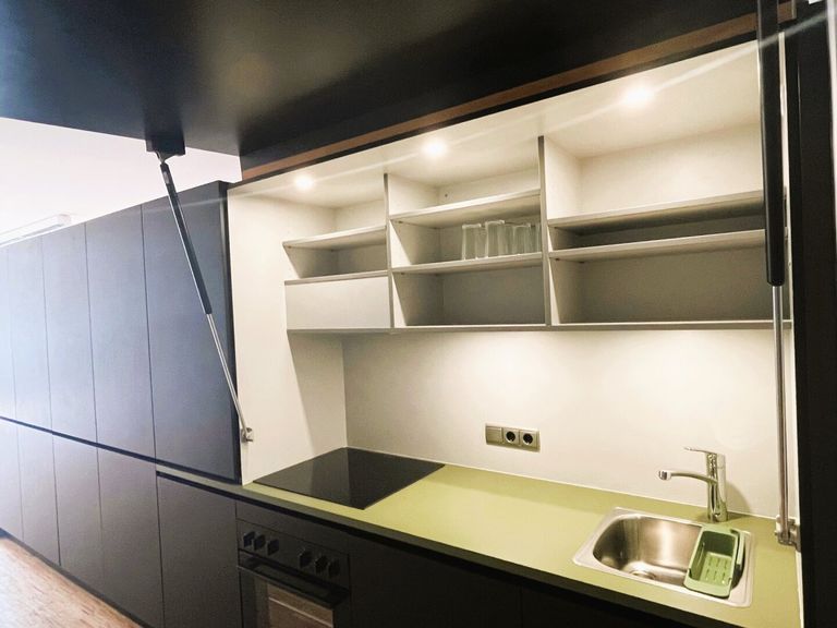 - im Mietpreis inkludiert: Designermöbel aus komplett schwarzen MDF-Platten