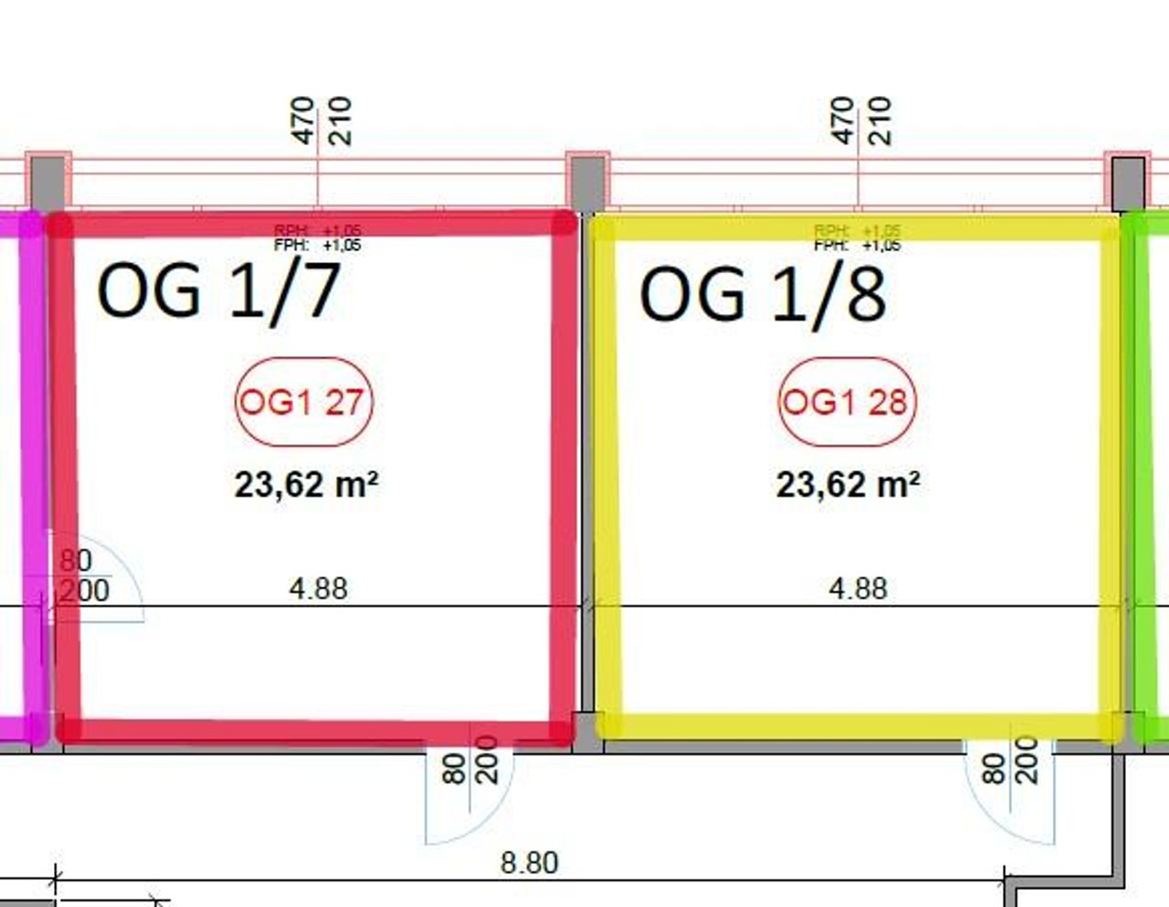 • Raumaufteilung: 1-2 Einraumbüros mit Verbindungstür