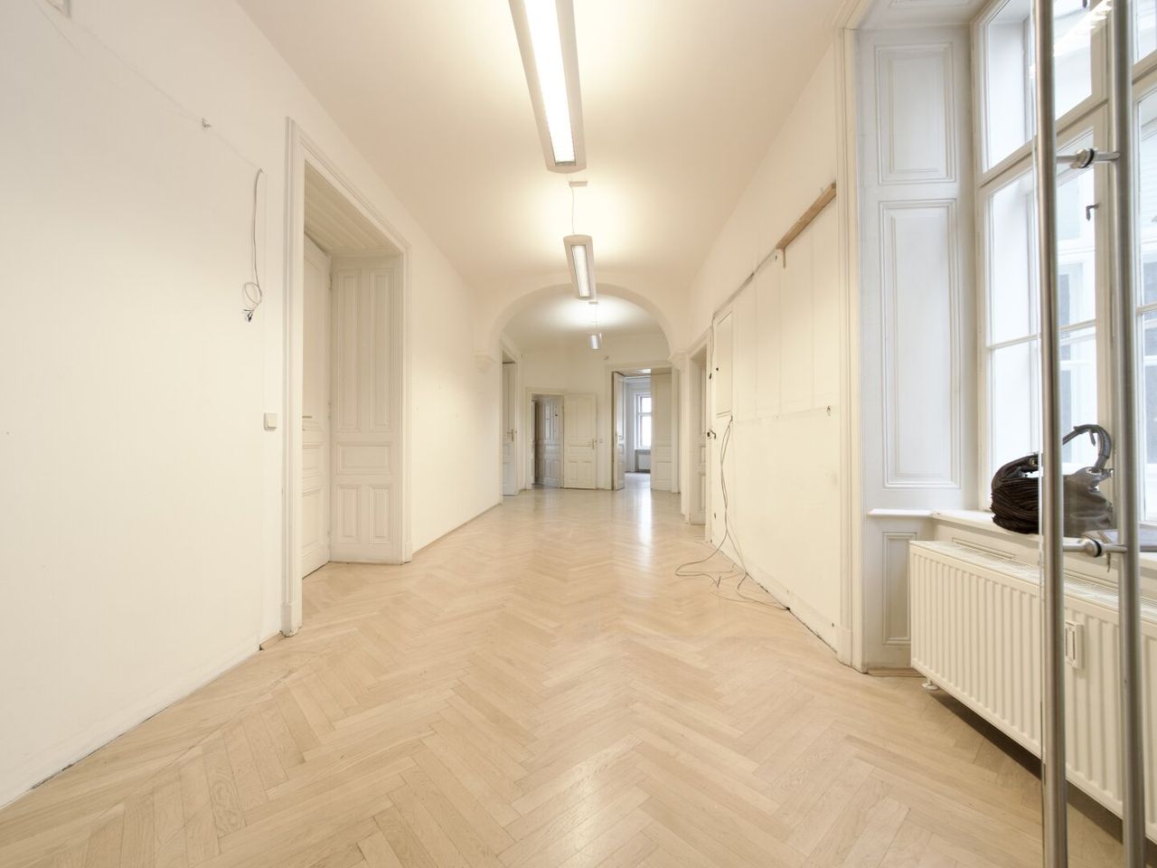In diesen hellen, offenen und großzügigen Räumen mit einer Raumhöhe von ca. 3,70 m und Blick auf den Neuen Platz lässt es sich wunderbar arbeiten!