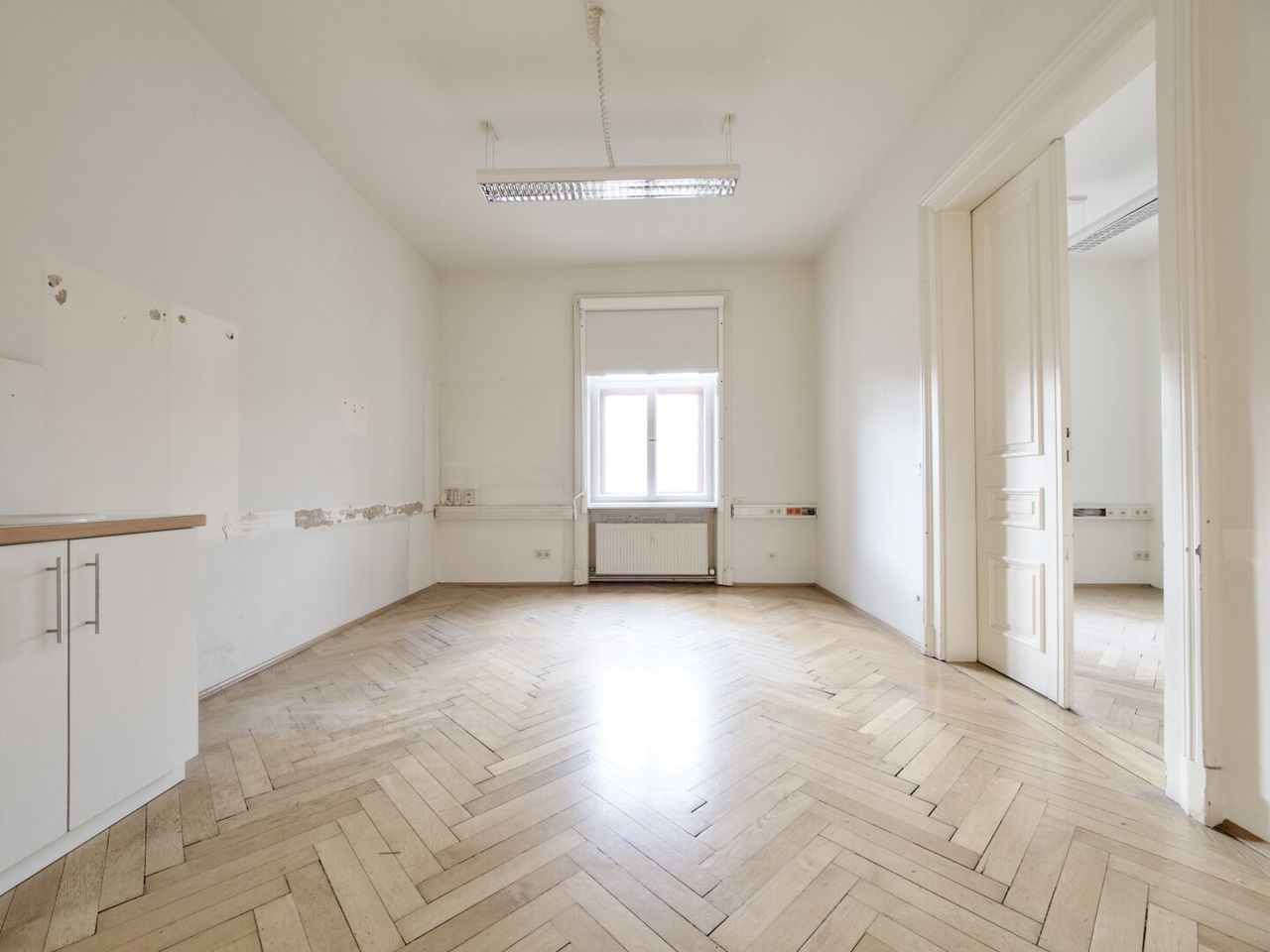 ... weiters durch den wunderschönen Altbaucharakter mit imposanter Raumhöhe, klassischen Flügeltüren, Kastenfenstern, Küche, WC ...