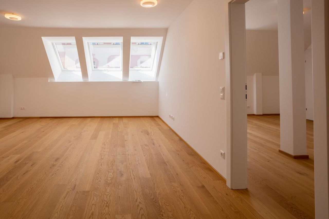 Mitten im Zentrum von Klagenfurt erwartet Sie eine top-sanierte 2-Zimmer-Mansardenwohnung in einem stilvollen Altstadthaus.