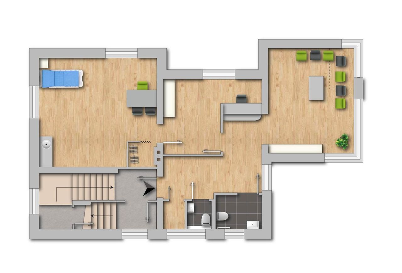 - ein großer Behandlungsraum oder ein weiteres Büro