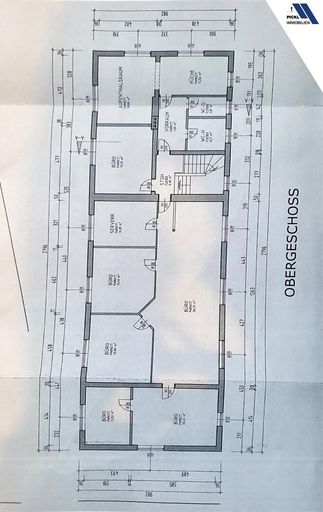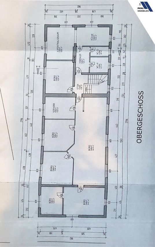 Büroaufteilung: 1 Chefbüro, 3 kleine Büros, 1 Großraumbüro, 1 Konferenzraum, 1 EDV-Raum, Küche, 2 separate WCs,