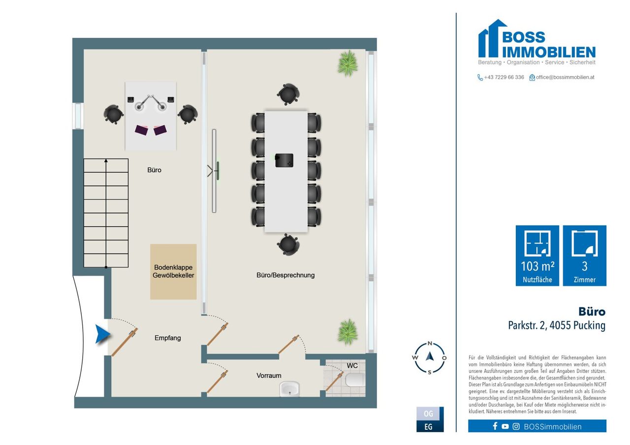 - Vielseitig nutzbar (Büro, Ordination, Therapie, Workshops u. v. m.)