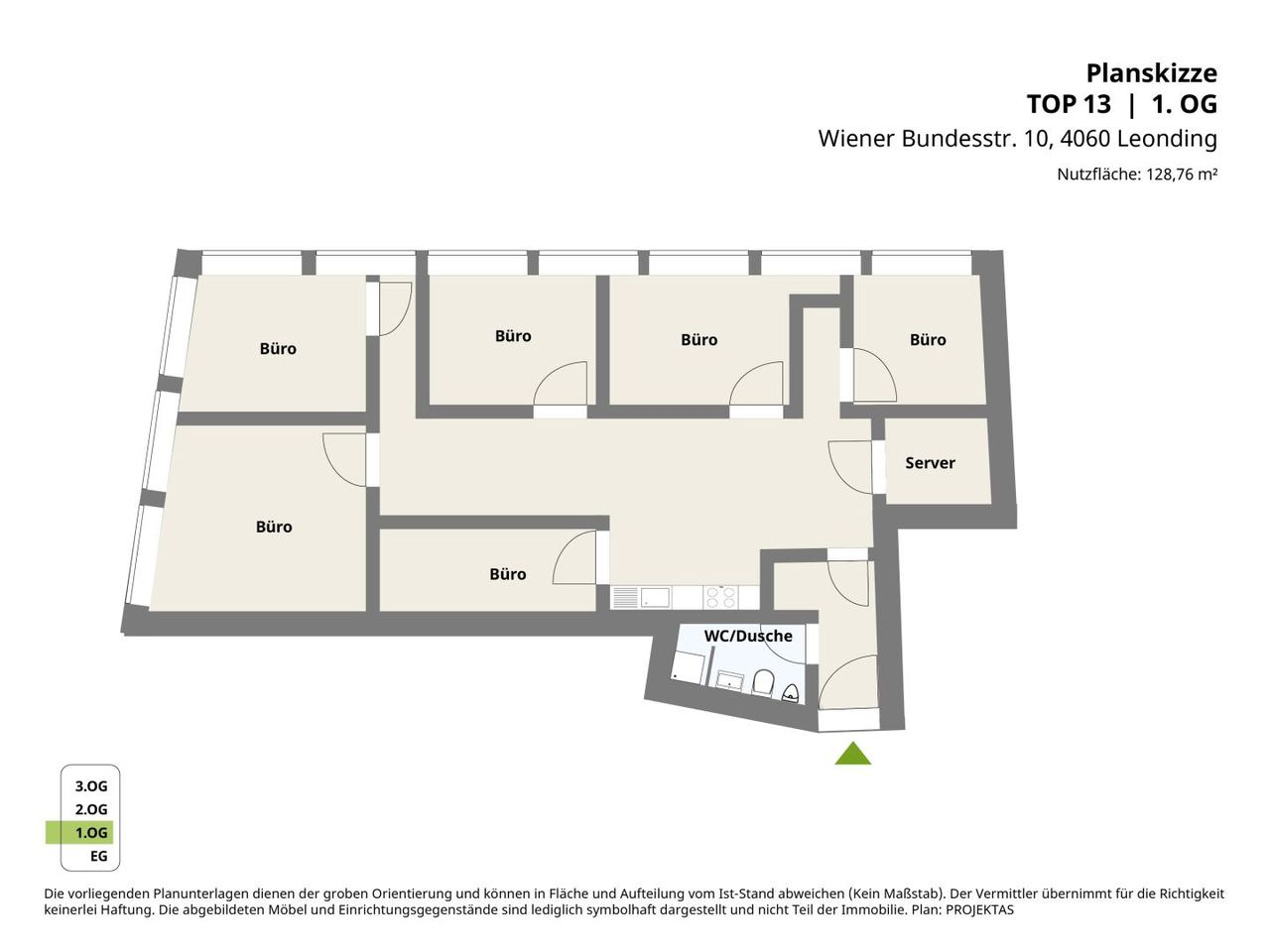 KLIMA - TEEKÜCHE - LIFT - PARKPLÄTZE QUICKFACTS Nutzfläche gesamt: ca. 128,76 m² Raumaufteilung: laut Planskizze Stockwerk: 1 OG Parkplätze: 5 möglich WC Anlagen: 1 Nettomiete / m²: € 13,24 Bezugstermin: ab sofort OBJEKTBESCHREIBUNG Dieses ca. 128 m² große Büro im ersten Stock des Doppl Centers ist gut aufgeteilt und bietet neben einer offenen Teeküche im zentralen Bereich 5 Büroräume, einen Besprechungsraum und einen abgetrennten Serverraum. Besonders attraktiv gestaltet ist die Raumaufteilung durch den Einsatz von Glastrennwänden. Selbstverständlich sind die Räumlichkeiten klimatisiert. Zu erwähnen ist die im Sanitärbereich integrierte Dusche. LAGE & VERKEHRSANBINDUNG Das DOPPL CENTER liegt direkt an der...
