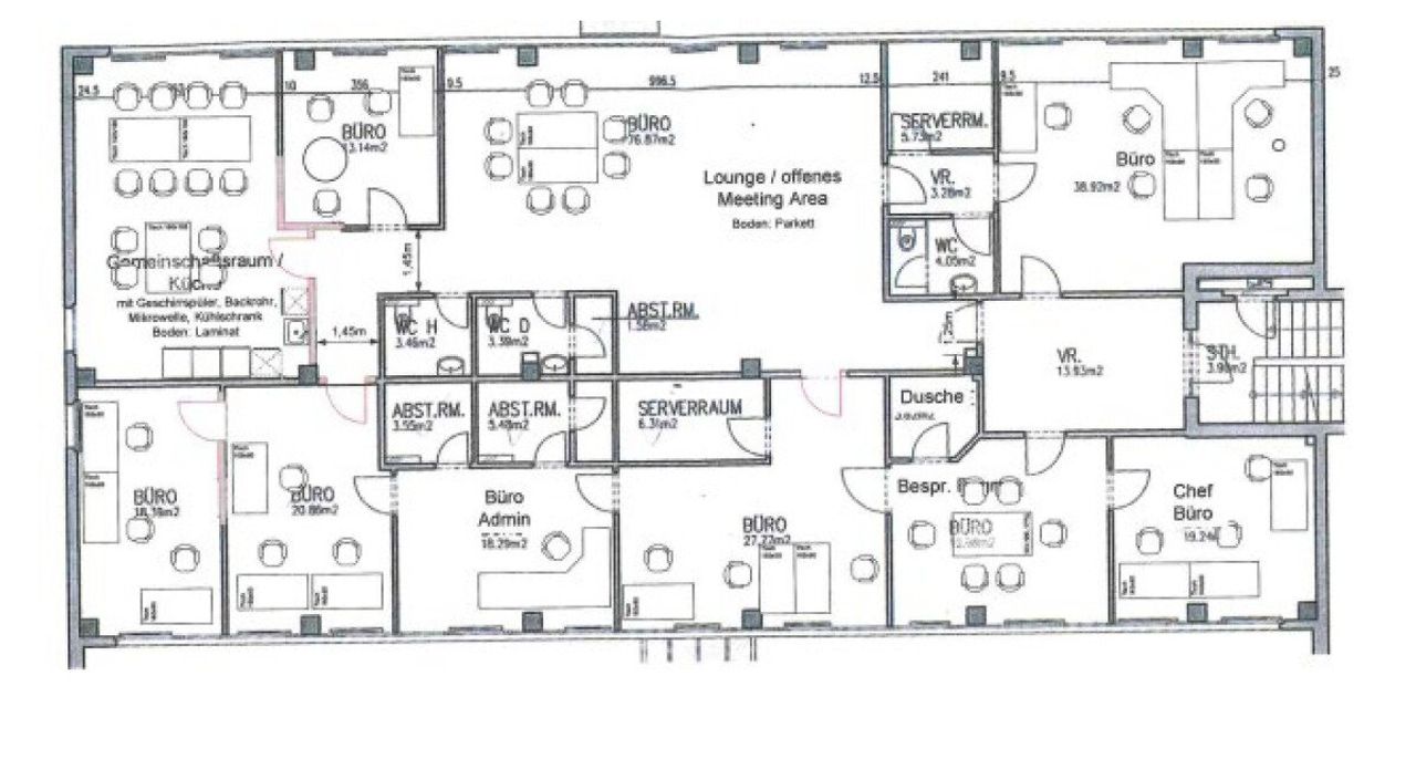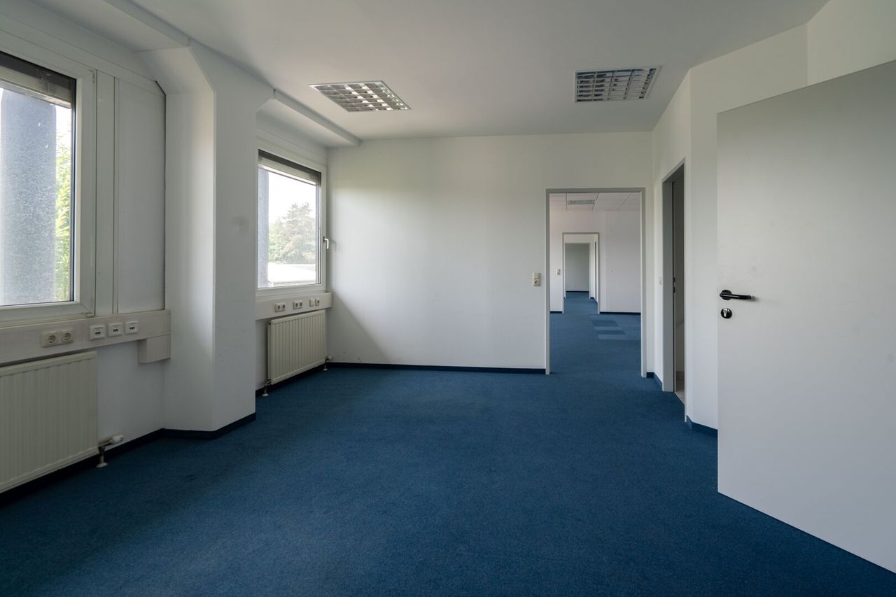 Empfang - 8 Büroräume- Besprechungsraum - Technikraum/Serverraum - Küche - 5 getrennte Sanitäranlagen - Dusche - 4 Kundenparkplätze inkl. E-Ladestation - Mitarbeiterparkplätze