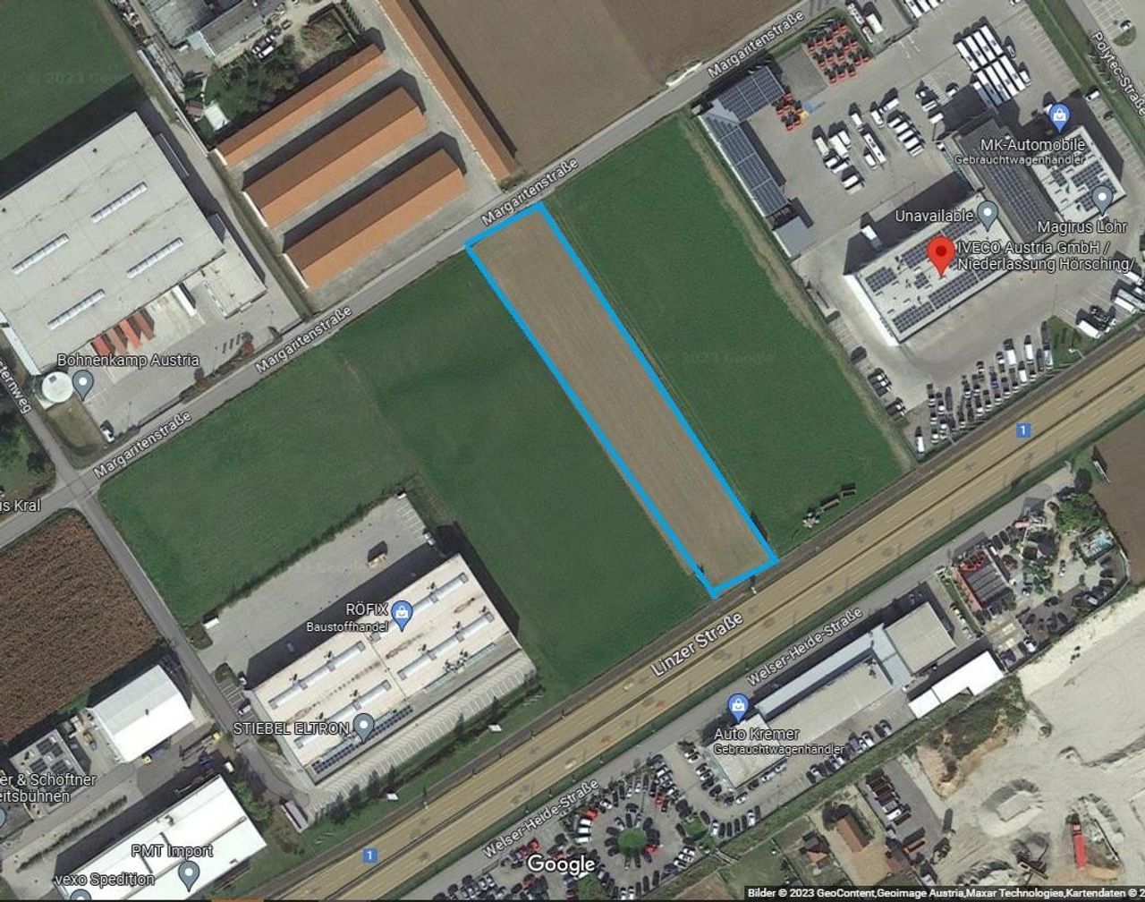Ein Grundstück mit B - Widmung, gut zufahrbar und grenzt an die B 1. Man wird also auch gut gesehen. Das Grundstück ist 32 Meter breit und 156 Meter lang. Es werden dort Hallen gebaut und im 1. OG Büros. Wir suchen einen Kunden der 1200 bis 2000 m2 Büro oder andere Verwendung im 1. OG sucht. Fertigstellung März 2027. Der Mieter kann noch mitbestimmen beim Innenausbau. Es geht auch Fitnesstudio , Austellungsfläche etc Das OG ist mit Treppe und Lift erreichtar und es gibt ausreichend Parkplätze. Es werden auch Kellerlager von 1500 bis 3000 m2 gebaut mit LKW Zufahrt...