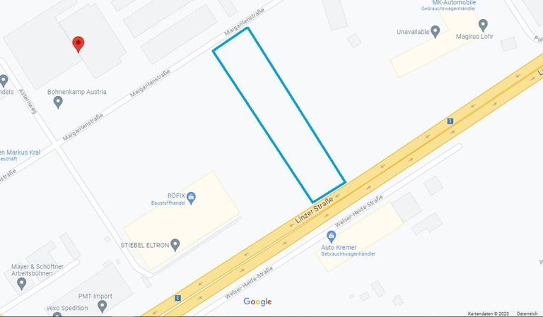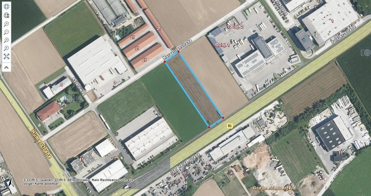 Ein Grundstück mit B - Widmung, gut zufahrbar und grenzt an die B 1. Man wird also auch gut gesehen.
