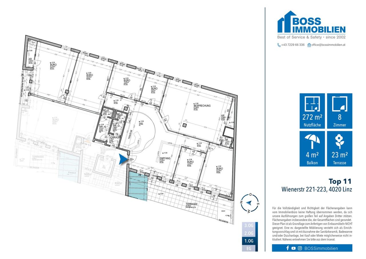 > Linz | Büro | Mieten < In ausgezeichneter Frequenzlage an der Wiener Straße 221–223 wartet diese großzügige Bürofläche darauf, mit Leben gefüllt zu werden. Auf rund 272 m² eröffnet sich Ihnen ein durchdachtes Raumkonzept, das sowohl repräsentativ als auch funktional überzeugt.
