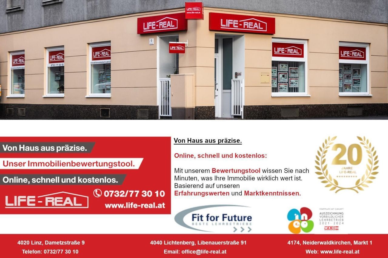 Bitte beachten Sie, dass wir aufgrund der Nachweispflicht gegenüber dem Eigentümer nur Anfragen mit vollständiger Angabe der Anschrift bearbeiten können.Für weitere Informationen und einen unverbindlichen Besichtigungstermin stehen wir Ihnen unter den Telefonnummern 0732/ 77 30 10 oder unter 0699/17 11 30 01 sowie unter office@life-real.at gerne zur Verfügung.
