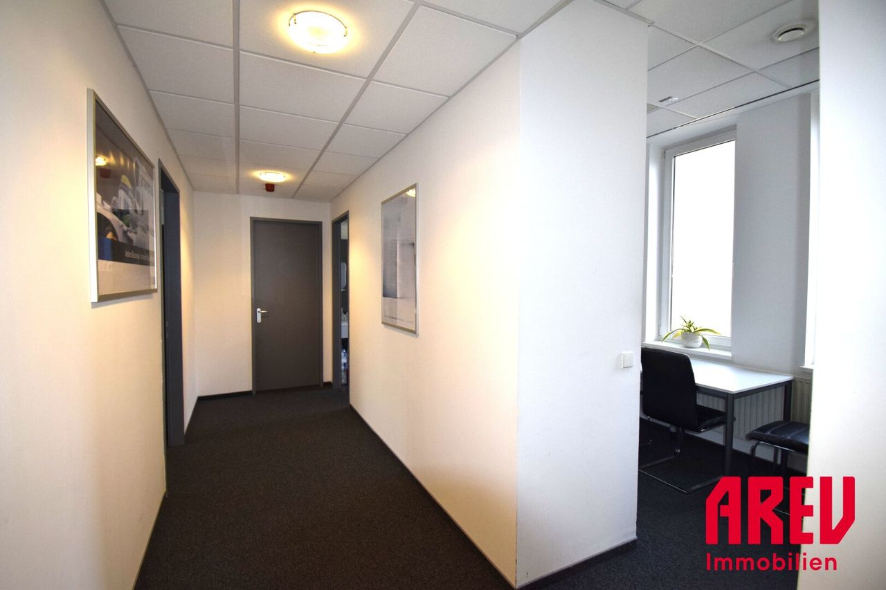 Betreten Sie Ihre neuen Räumlichkeiten und genießen Sie den Blick, der Ihnen täglich Inspiration für neue Projekte und Ideen liefern wird. Der hochwertige Teppichboden sorgt für eine angenehme Atmosphäre und ein angenehmes Arbeitsklima.